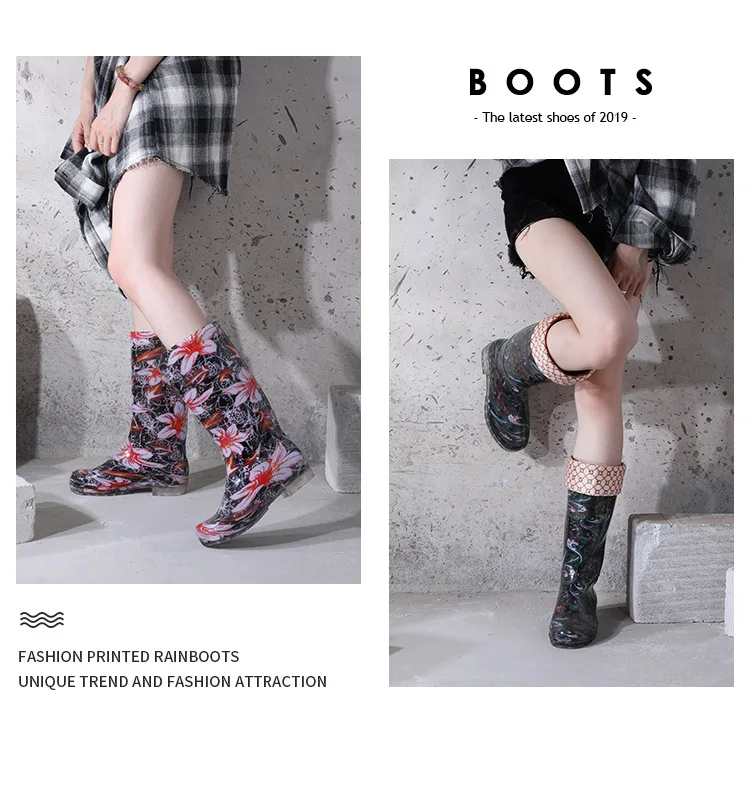 Высокие резиновые ботинки в тропическом стиле, износостойкие водонепроницаемые ботинки, Нескользящие резиновые ботинки, размеры 36-41