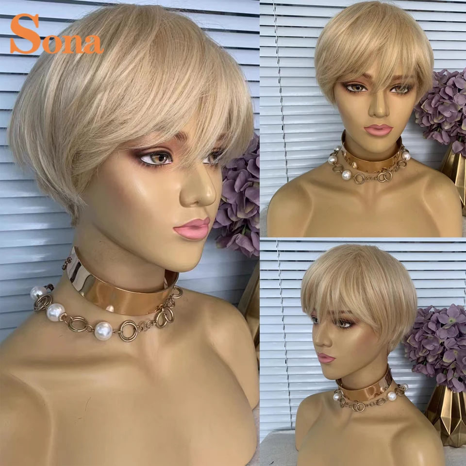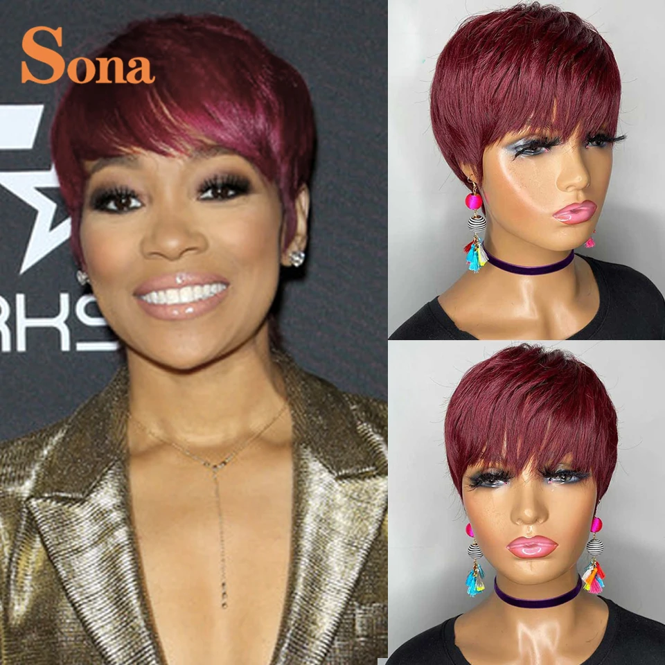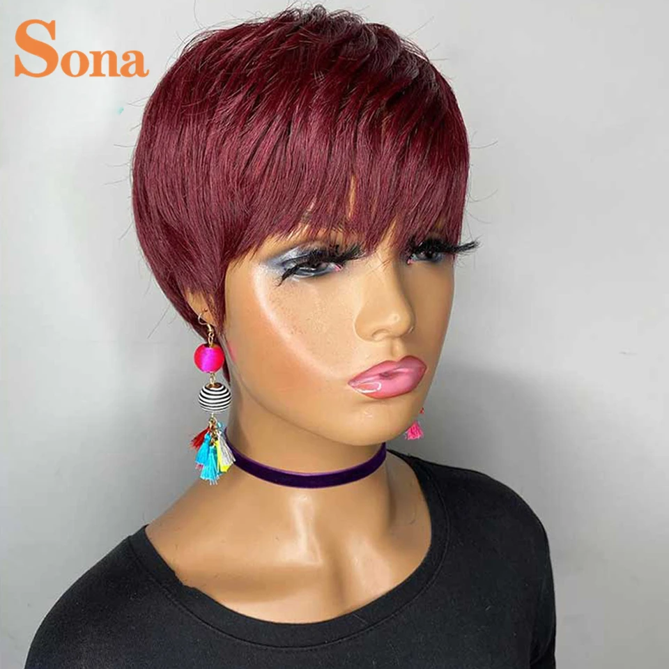 Парики короткие из человеческих волос с челкой, без шнуровки, 99J