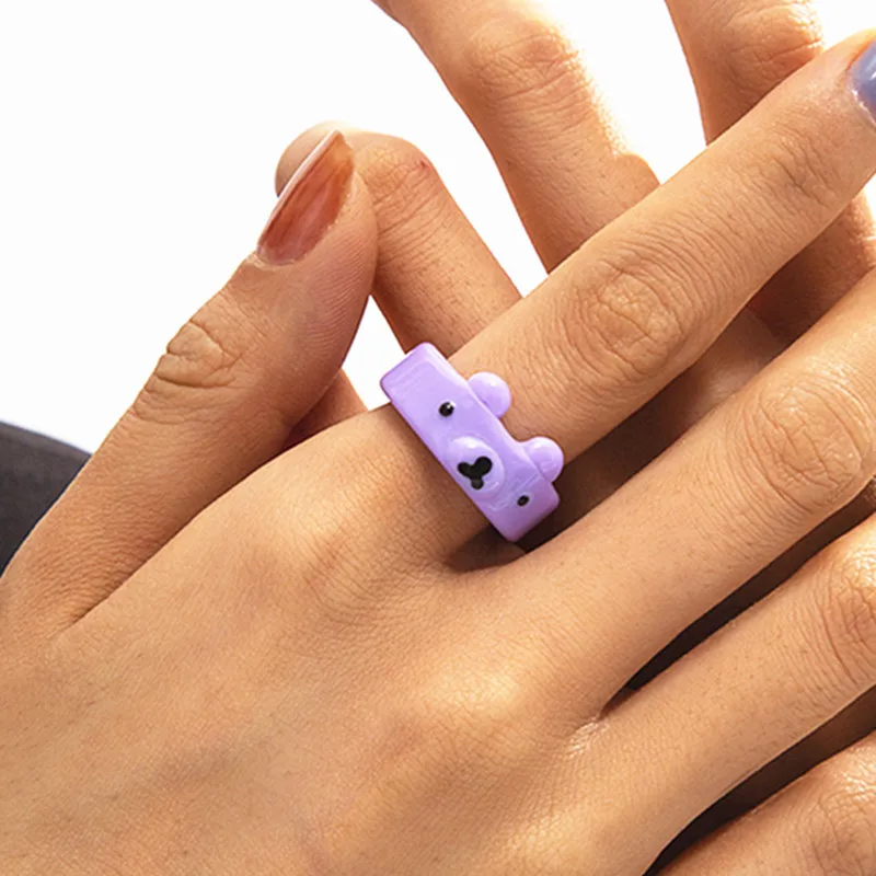2021 простые Мультяшные полимерные акриловые широкие кольца Осьминогмедведь маленькие животные для женщиндевочек милые модные ювелирные изделия карамельных цветов Подарки
