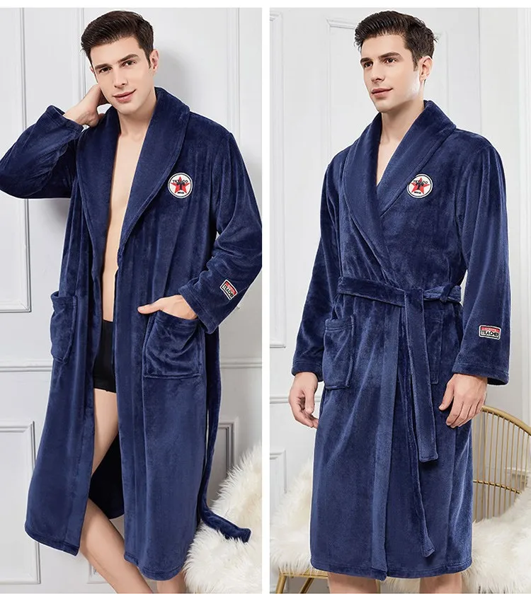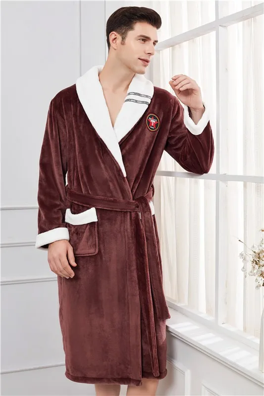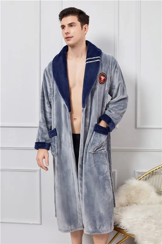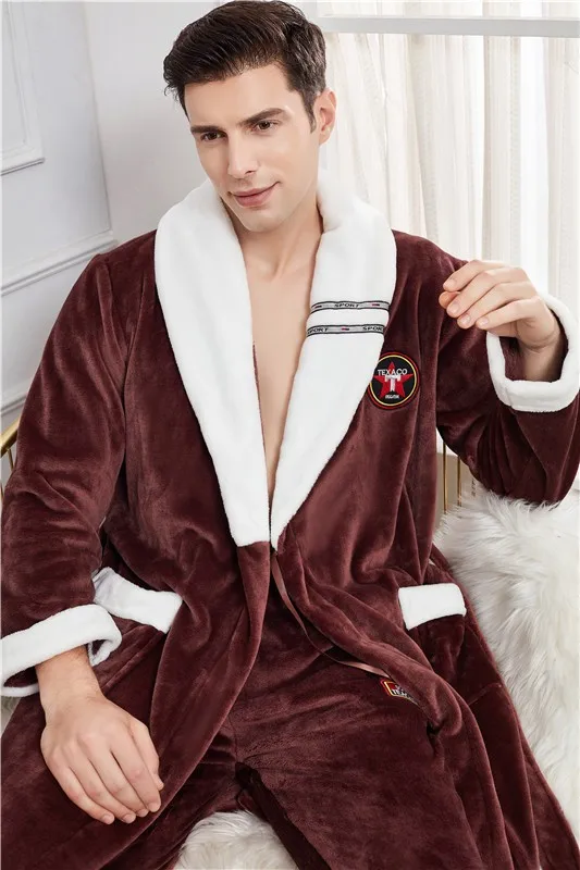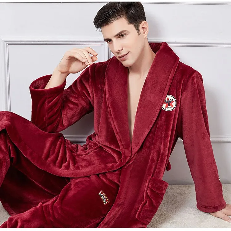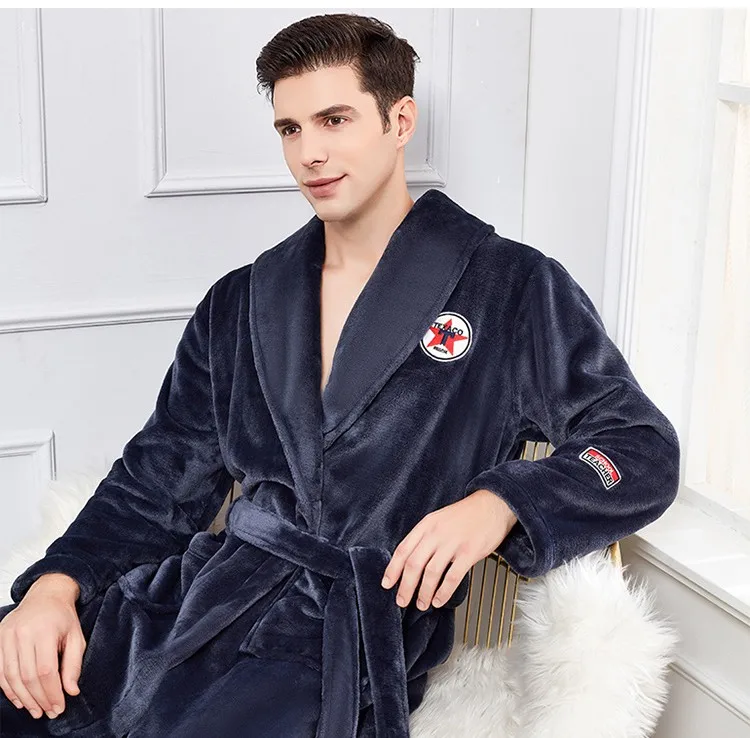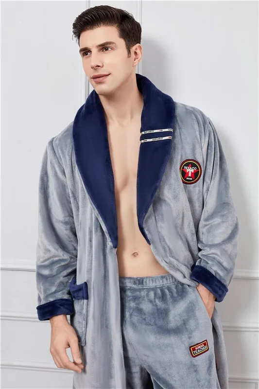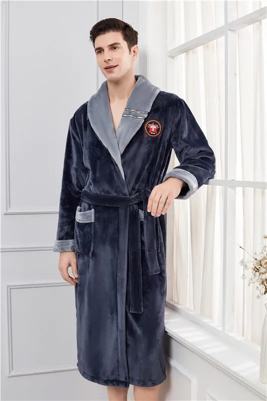 Осенне-зимняя теплая Мужская одежда для сна большого размера, фланелевая Мужская одежда для сна, толстый длинный халат, ночная рубашка, домашняя одежда, повседневная домашняя одежда