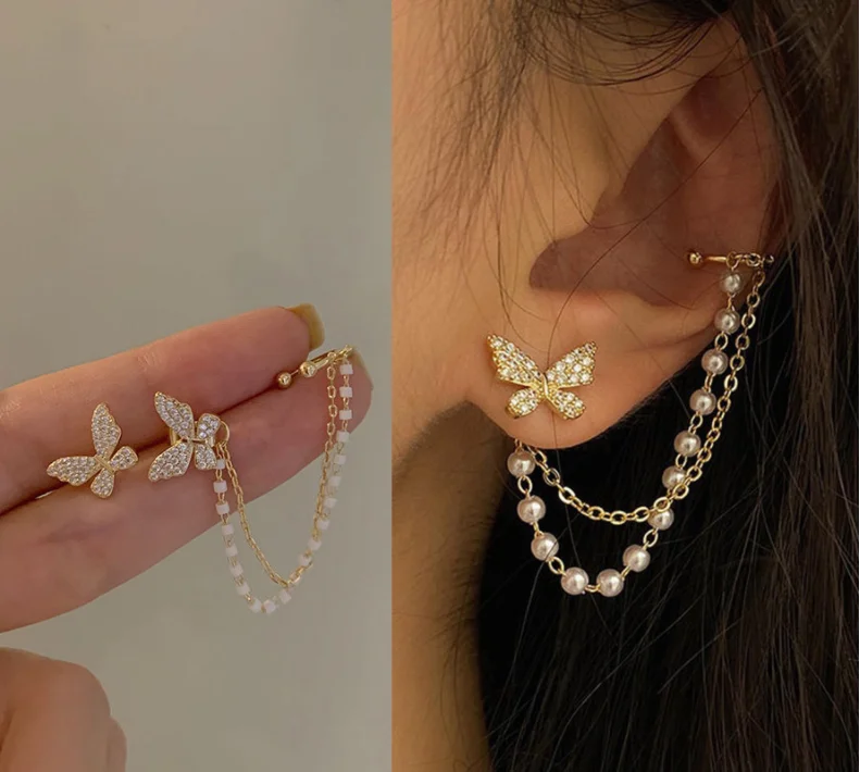 Серьги-клипсы Delysia King с бабочкой, цепочка, кисточка, персонализированные серьги