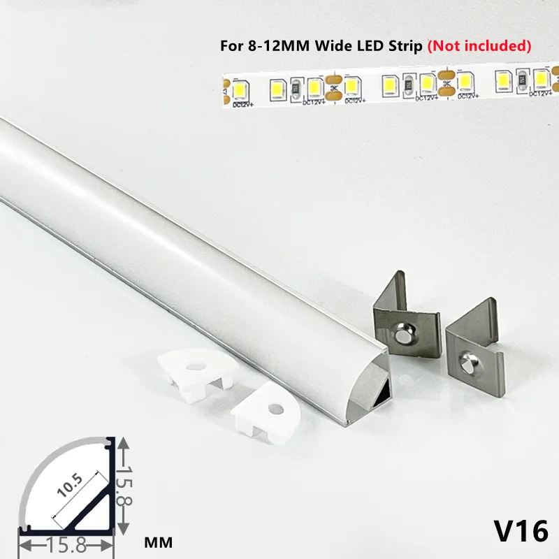 Диммируемый V-образный светодиодный светильник для шкафа, угловая алюминиевая лента 50 см, 20 дюймов, 16 х16 мм, 12 В постоянного тока, 6 Вт, с изогнутыми линзами, для шкафа