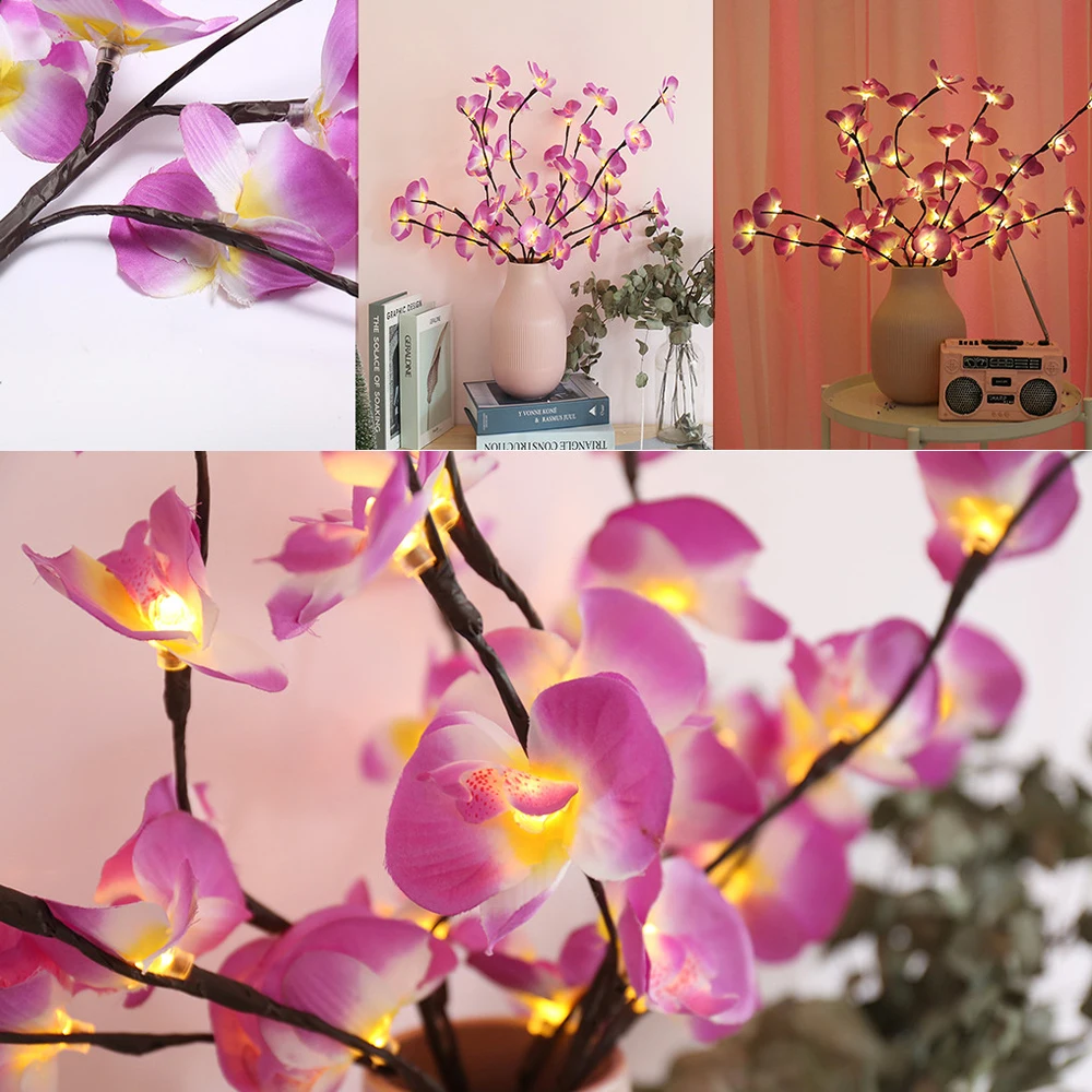 Искусственный цветок фаленопсиса ветка дерева светильник для дома Рождественская вечеринка садовый декор светящиеся Искусственные цветы с новым годом