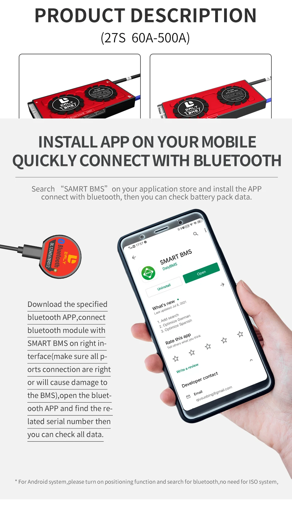 Daly smart bms 27s 100v 80A 100 ick 120A 150A 200A 250A bms mit blu...