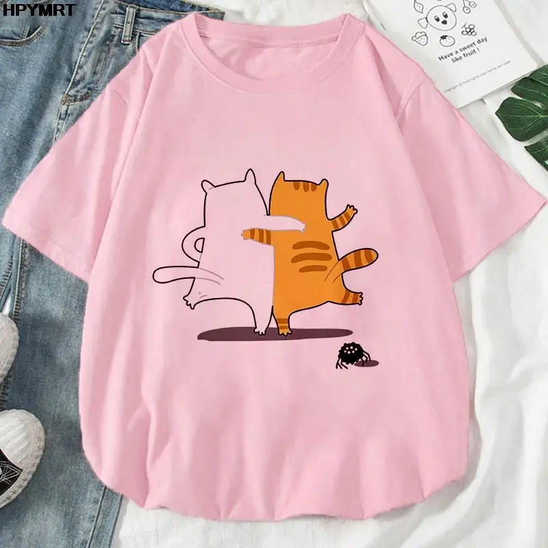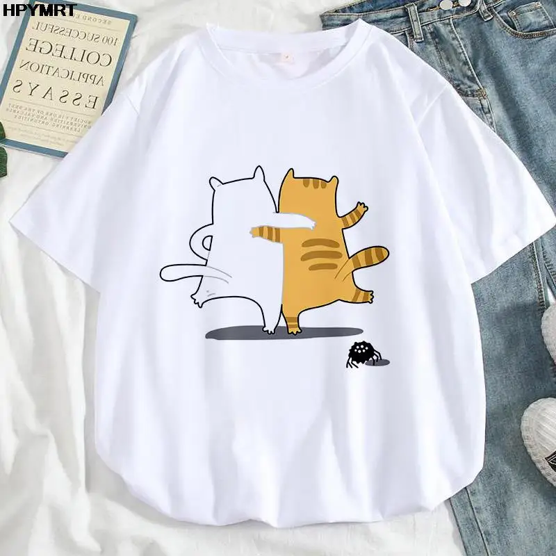 Новая летняя футболка в стиле Харадзюку, женская футболка, модная футболка с принтом милого кота и коротким рукавом, уличные топы, футболка, женская одежда