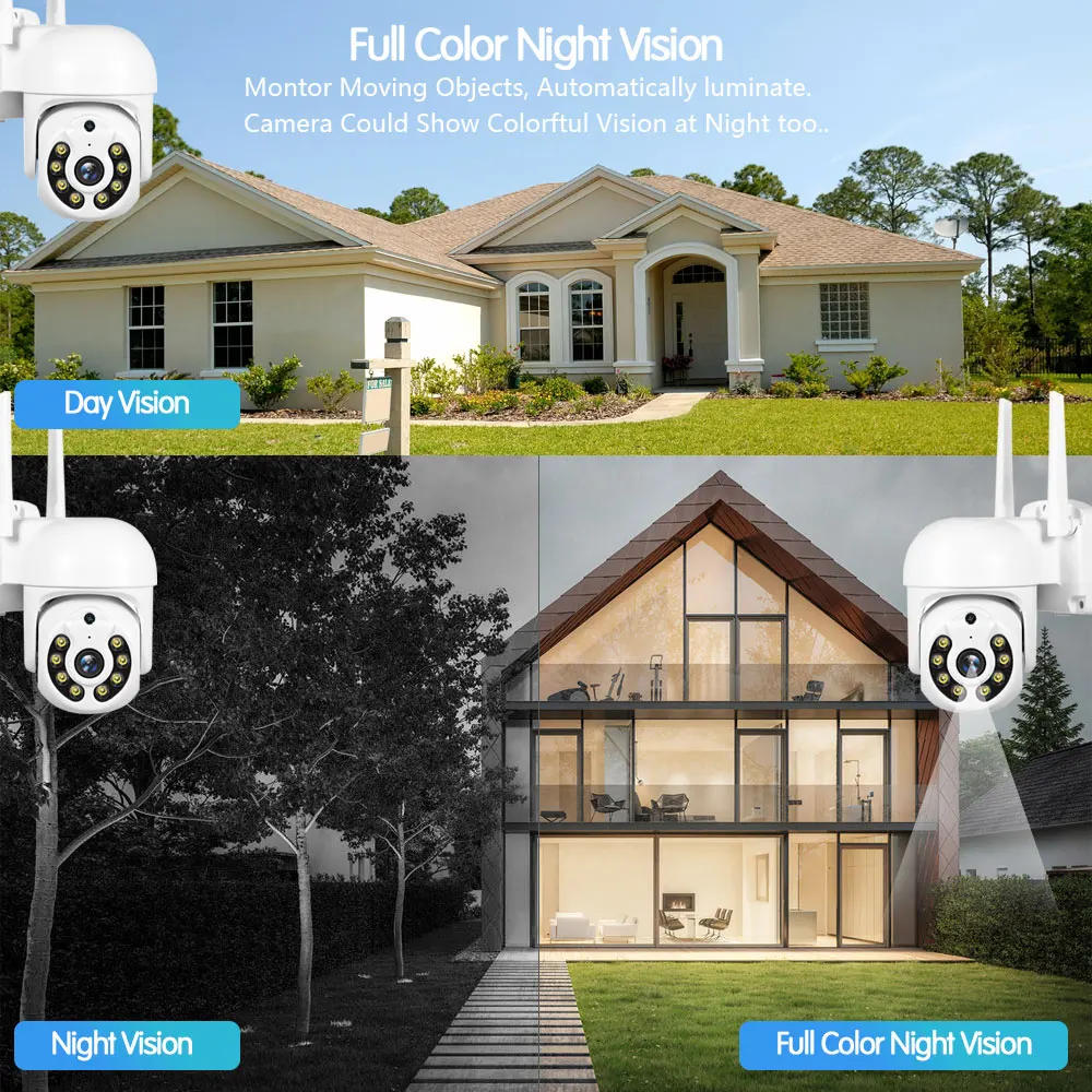Когда белый светодиодный светильник включен, камера будет отображать красочное видение ночью, и есть три режима ночи для вас на выбор.