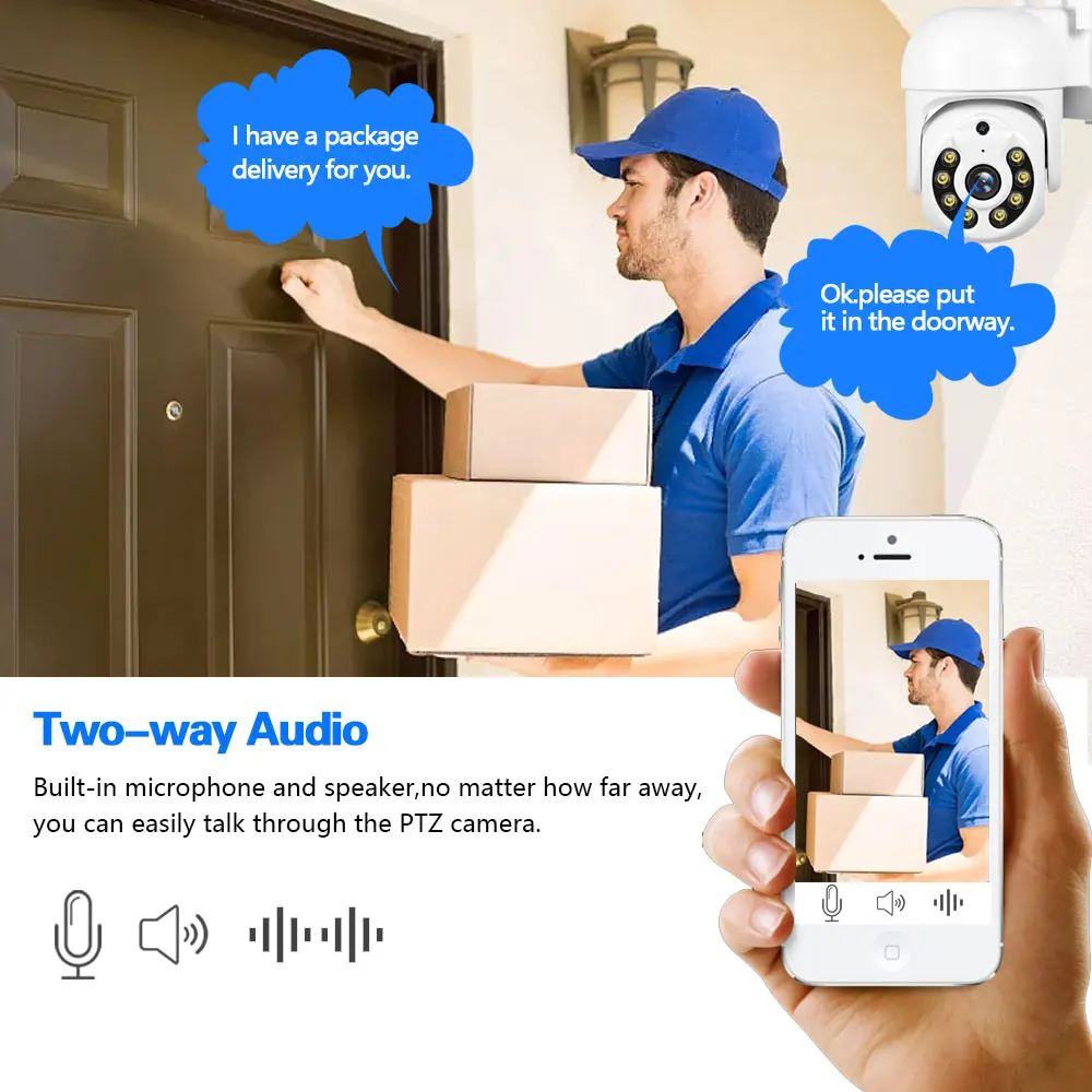 Камера оснащена микрофоном и динамиком. Так что вы можете говорить со своими детьми через смартфон удаленно, когда захотите.