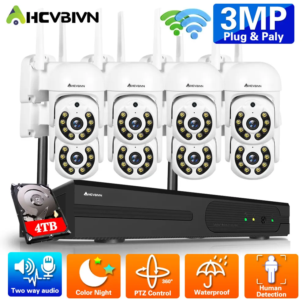 HD Wifi CCTV камера система безопасности комплект PTZ 3MP 8CH Беспроводной NVR комплект двухсторонняя аудио наружная IP камера система видеонаблюдения