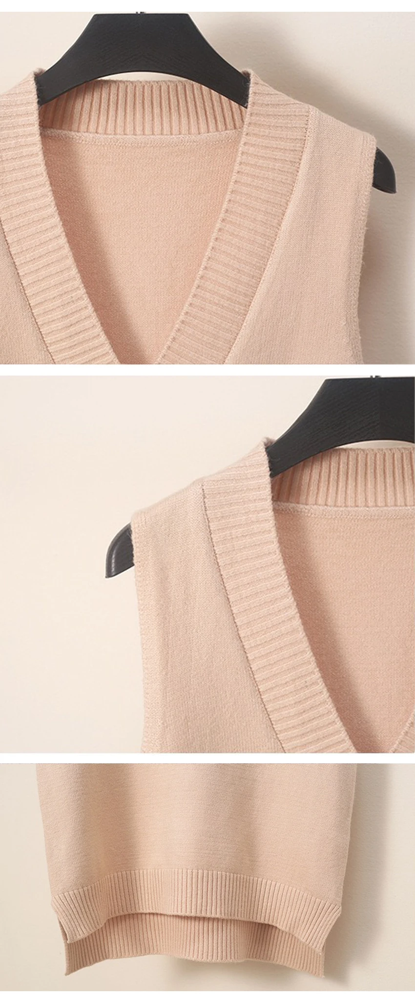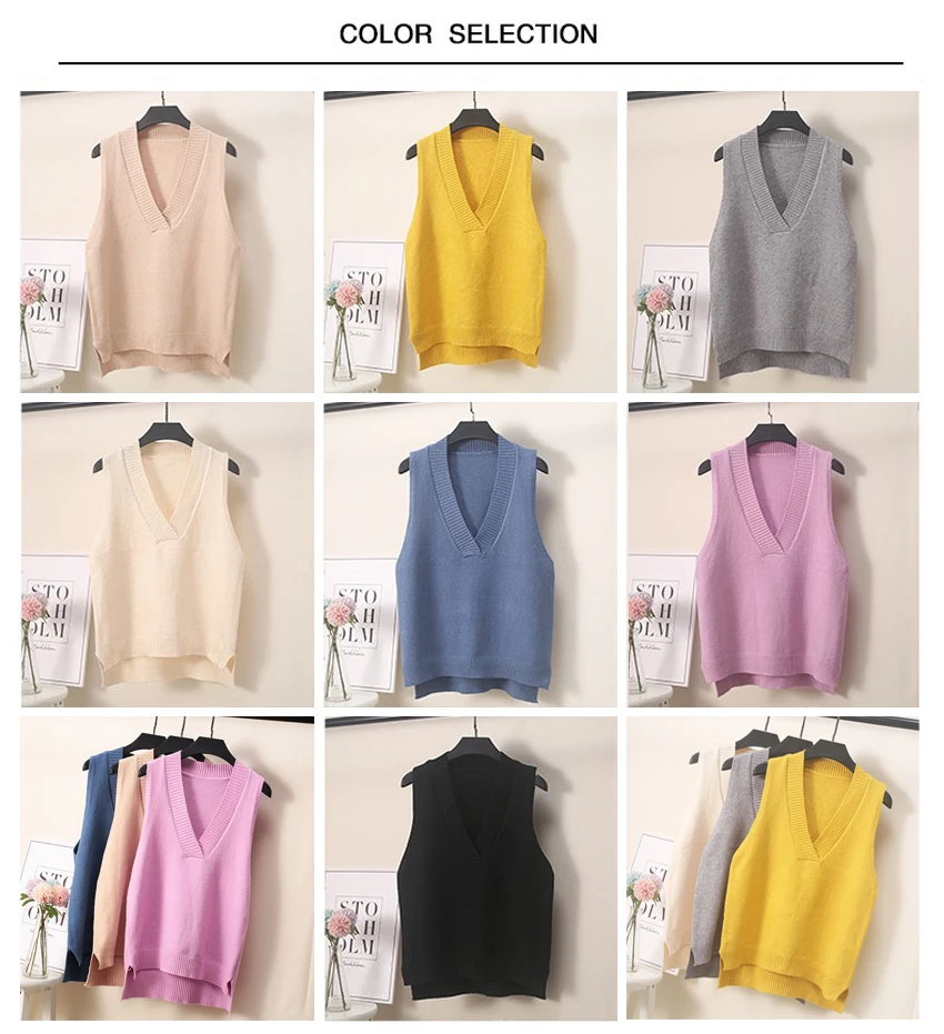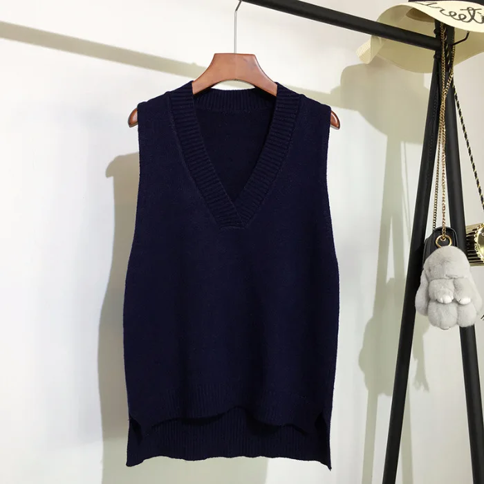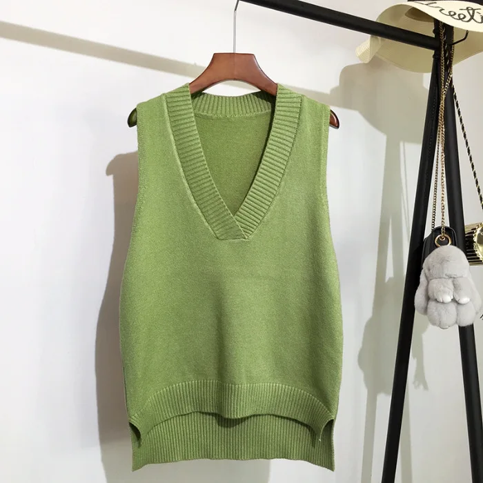 Женский трикотажный жилет с V-образным вырезом, Свободный жилет в К...