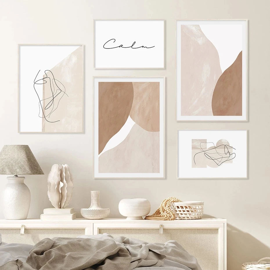 Абстрактная Картина на холсте в стиле бохо, бежевая Терракотовая Геометрическая линия, настенная живопись, плакат, печать, интерьер гостиной, украшение для дома