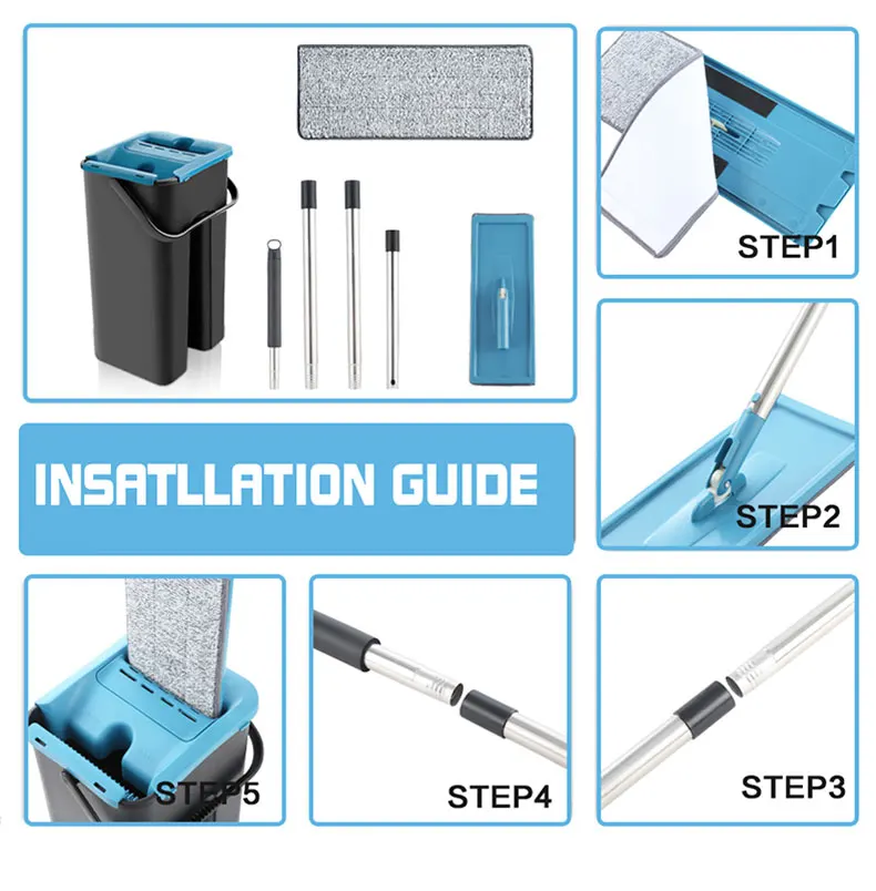 Package Includes4/6pcs cloth+1pc Floor Mop head+ 1 Bucket