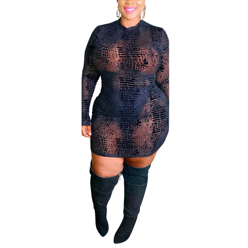 Сексуальные сетчатые прозрачные платья, женские вечерние платья для ночного клуба, элегантные женские платья с длинным рукавом, облегающие обтягивающие платья размера плюс 4XL 5XL, наряды