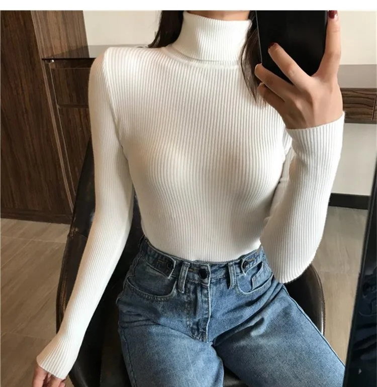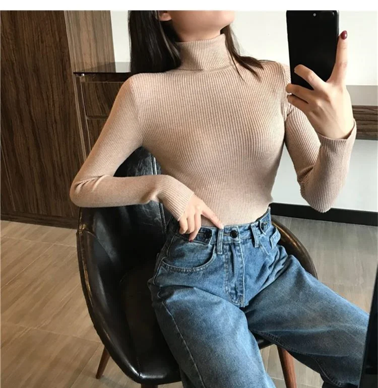 Женский вязаный свитер, мягкий Повседневный вязаный свитер, теплый уличный свитер для женщин, корейский пуловер с высоким воротником, женские топы