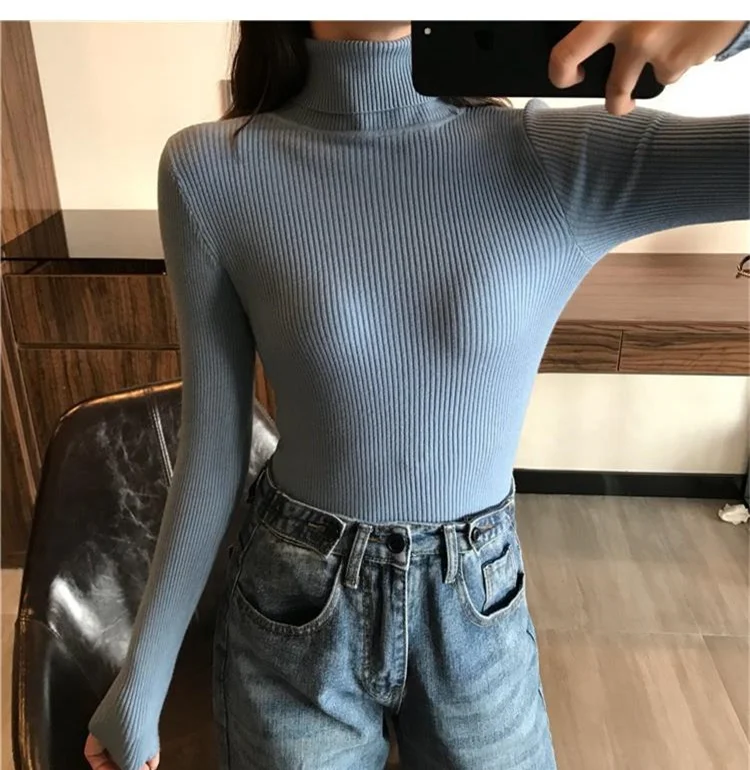 Женские свитера с высоким воротником, сезон осень-зима, корейский Т...