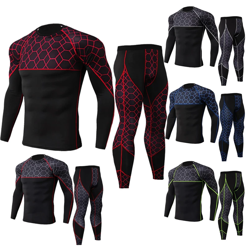 Новинка 2019, компрессионные мужские спортивные костюмы, быстросохн...