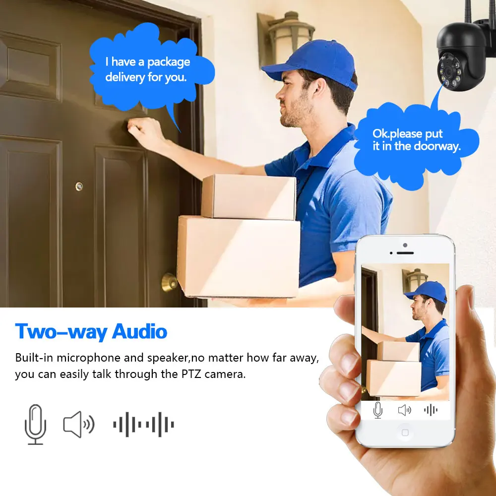 Камера оснащена микрофоном и динамиком. Так что вы можете говорить со своими детьми через смартфон удаленно, когда захотите.