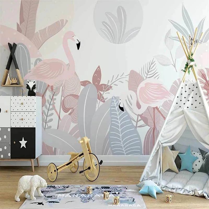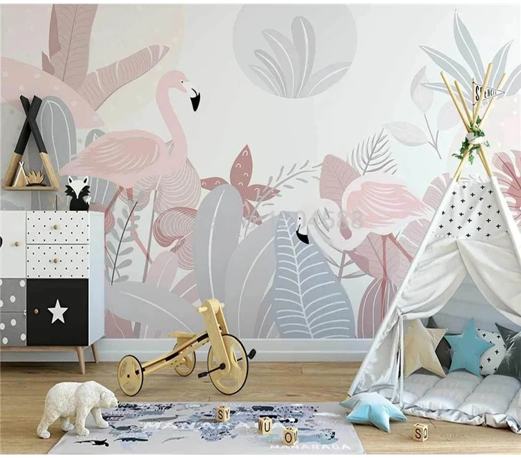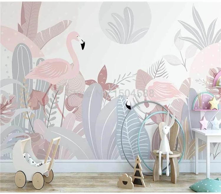 Настенные обои на заказ скандинавские Ins ручная роспись абстрактное растение Фламинго настенная живопись гостиная спальня внутренняя фоновая стена