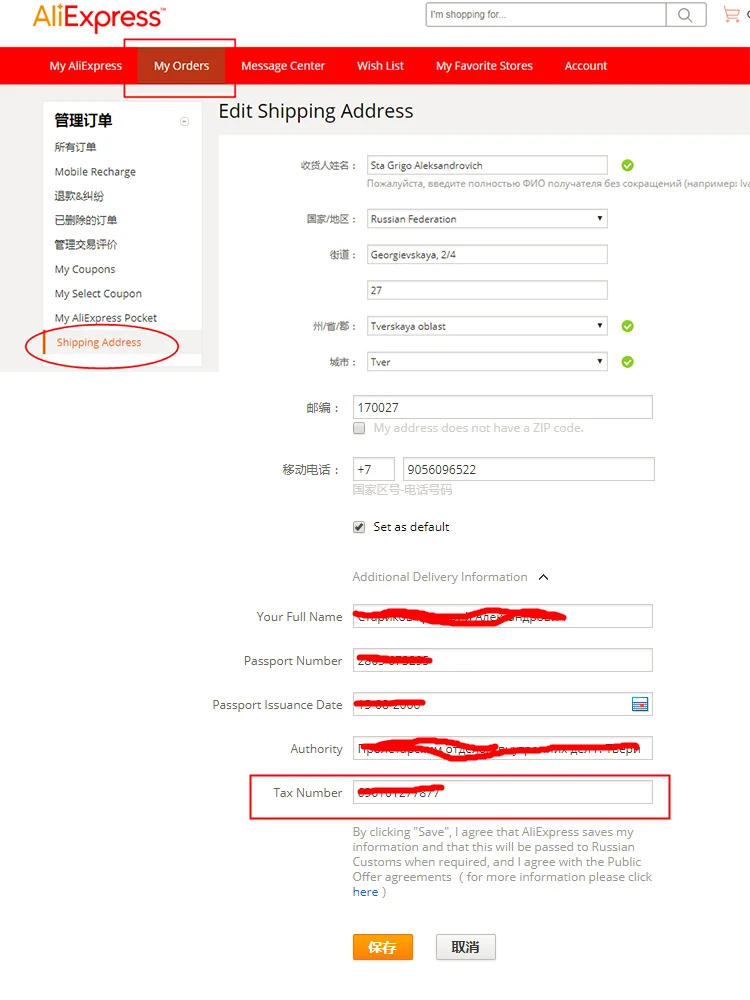 О: Пожалуйста, заполните ваше полное имя и налоговый номер при размещении заказа.