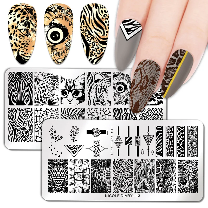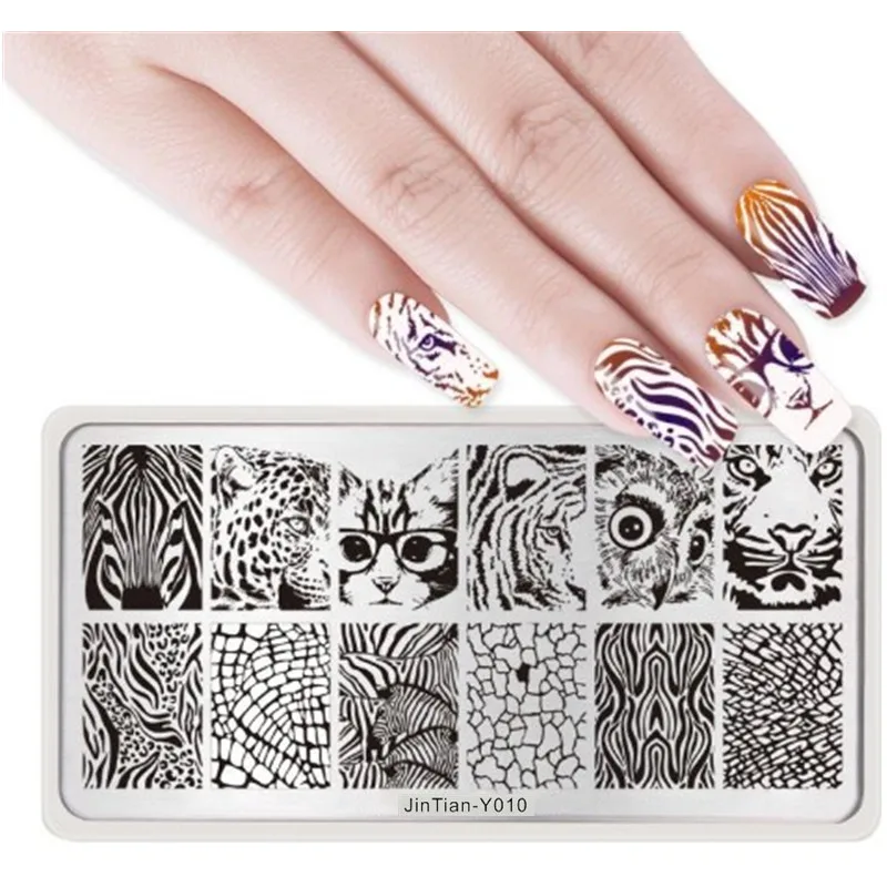 6 Дизайнов штамповочные пластины Тигр Зебра Змея Печать животных изображение из нержавеющей стали шаблон для дизайна ногтей текстура для маникюра украшения