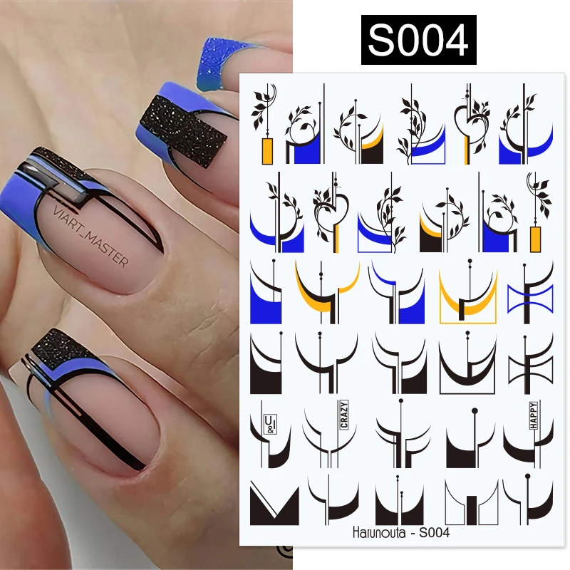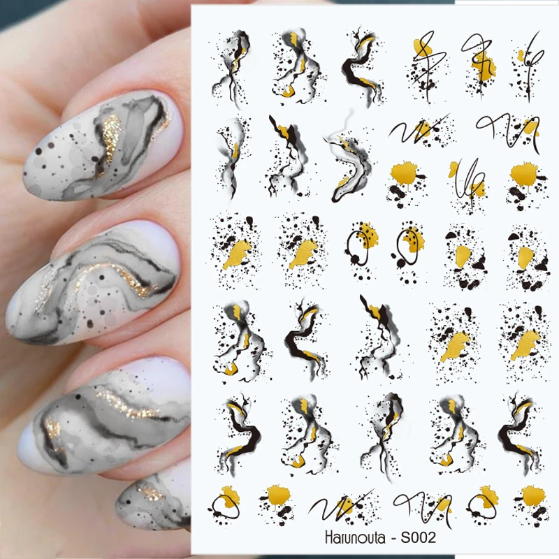 3D наклейки для ногтей с мраморным рисунком Harunouta, переводные наклейки с цветами, листьями, водными слайдерами, абстрактные Геометрические линии, водяные знаки для ногтей