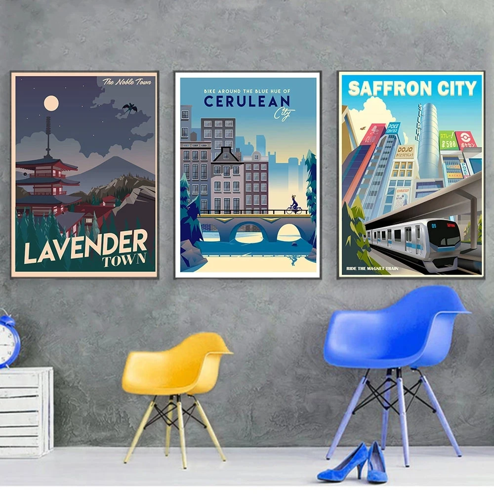 Домашний Декор без рамки Покемон путешествия аниме постер керамический город Лаванда пейзаж холст печать искусство картина настенное искусство