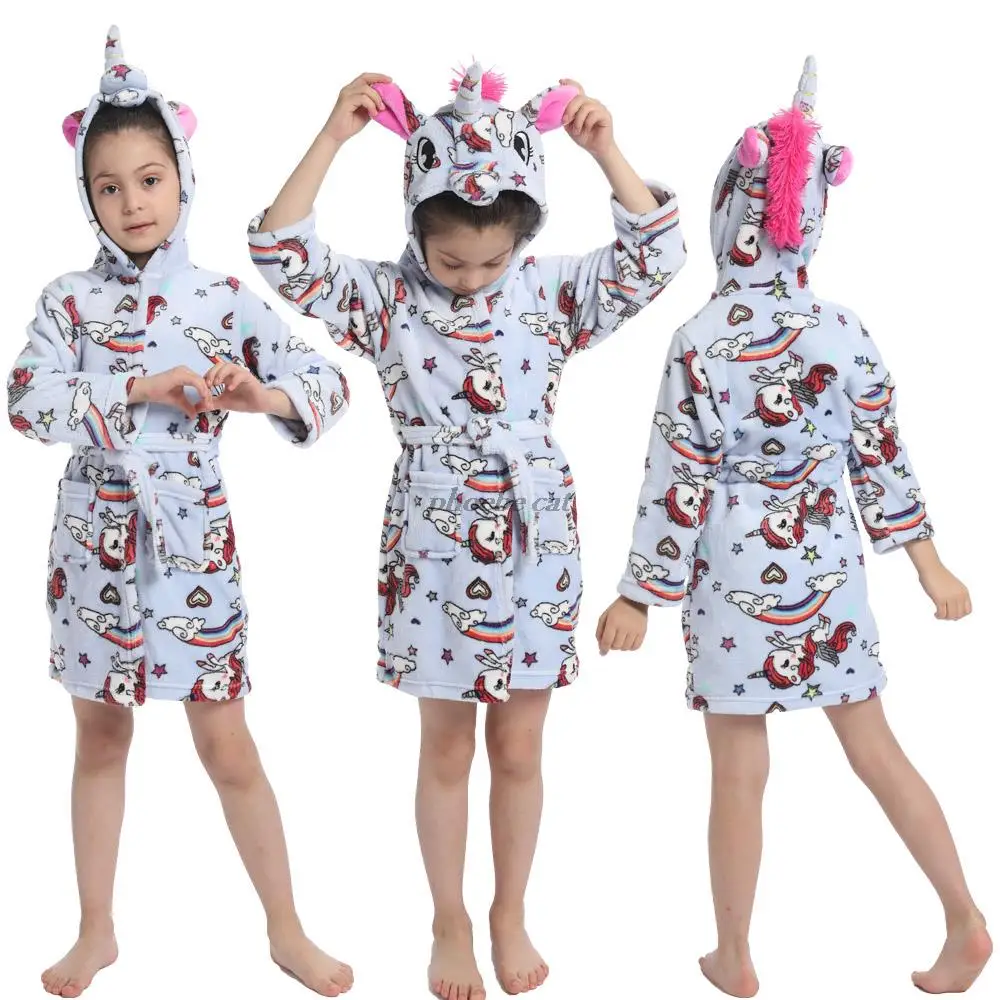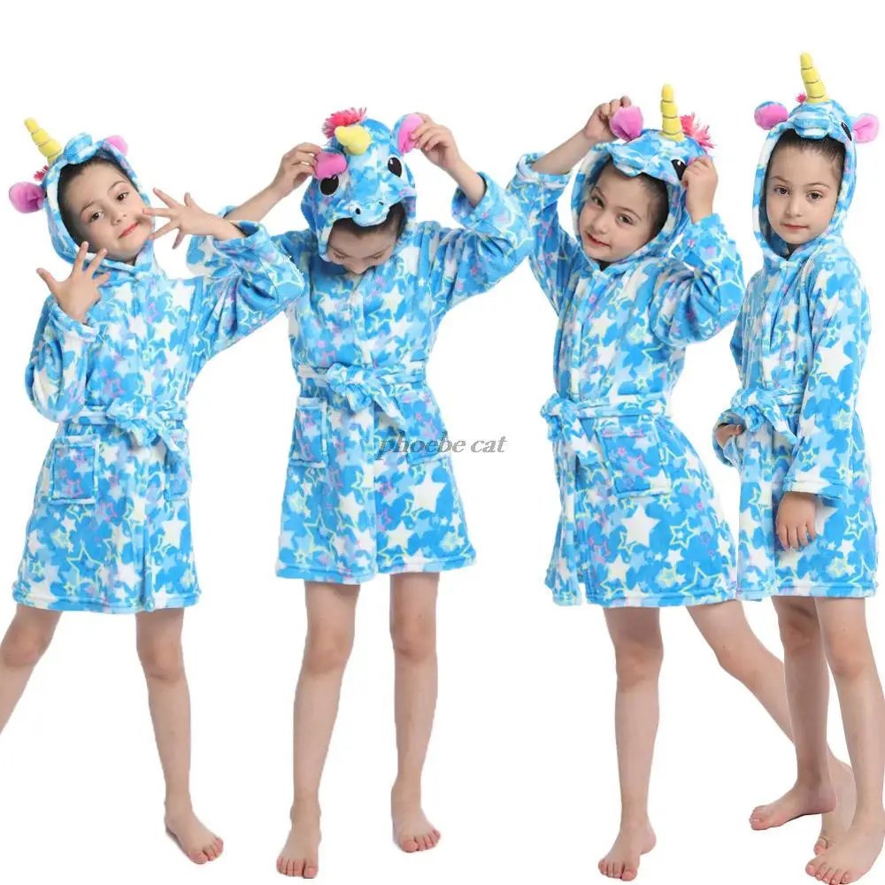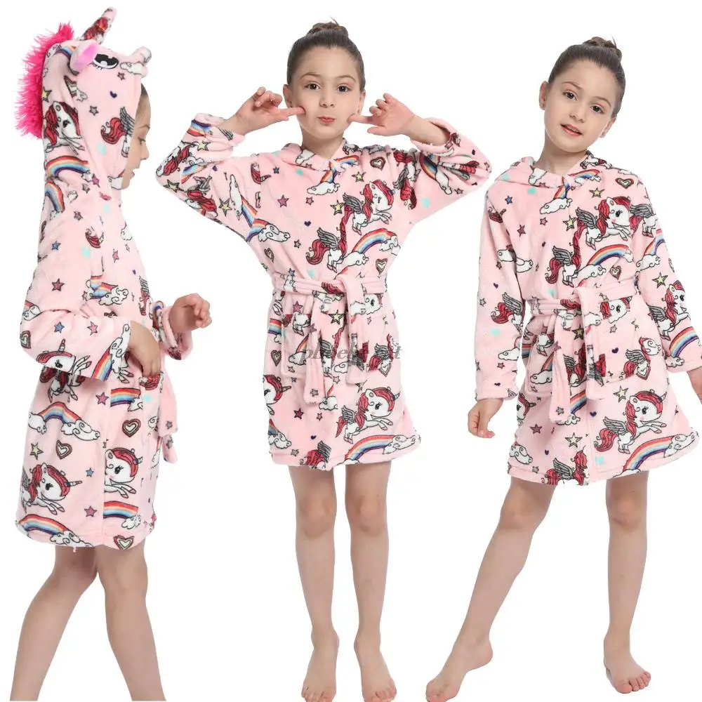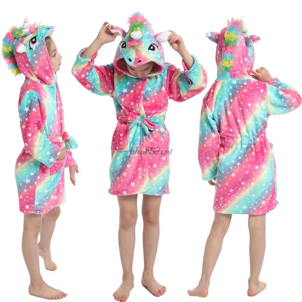 Детская ночная рубашка Единорог одежда для маленьких девочек полотенца Мультяшные Животные Детская одежда для сна халат мягкий теплый детский халат с капюшоном