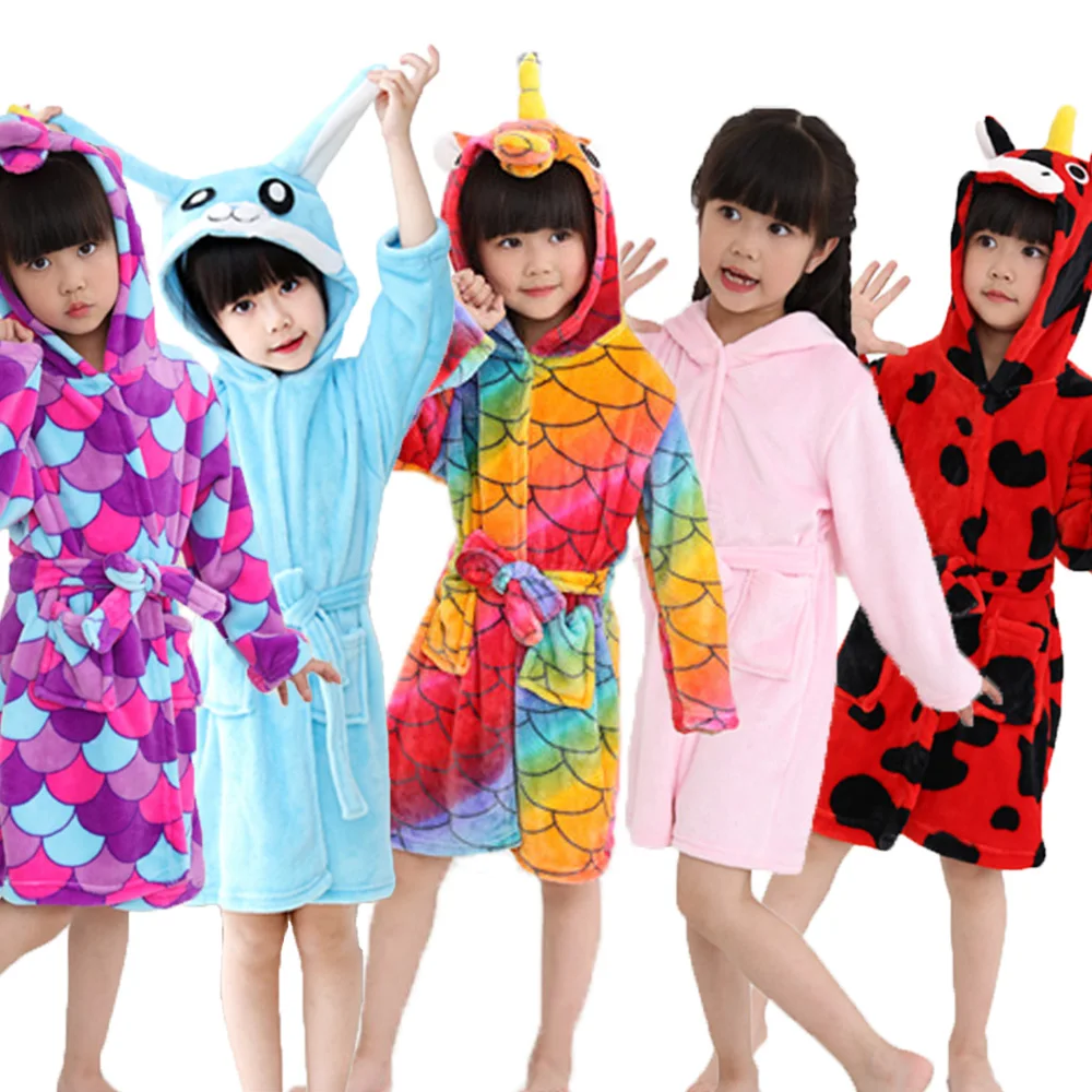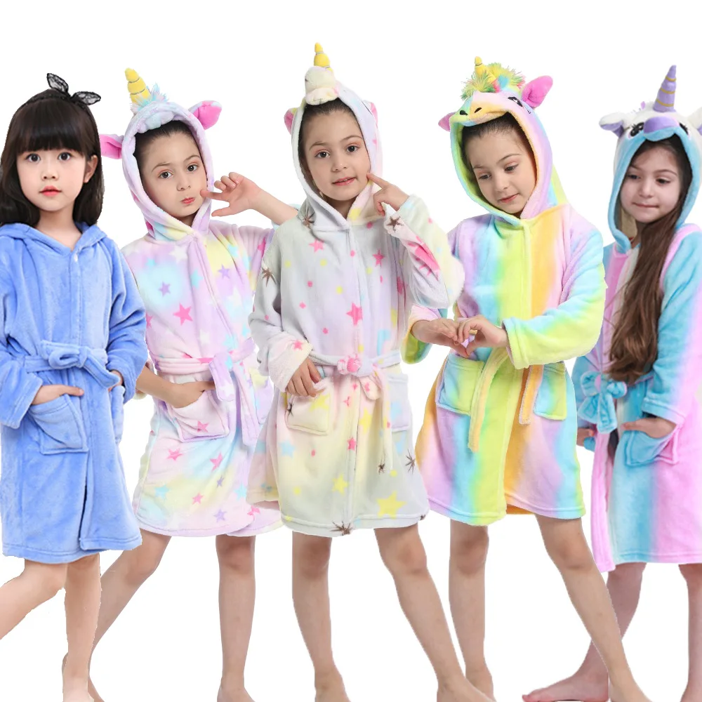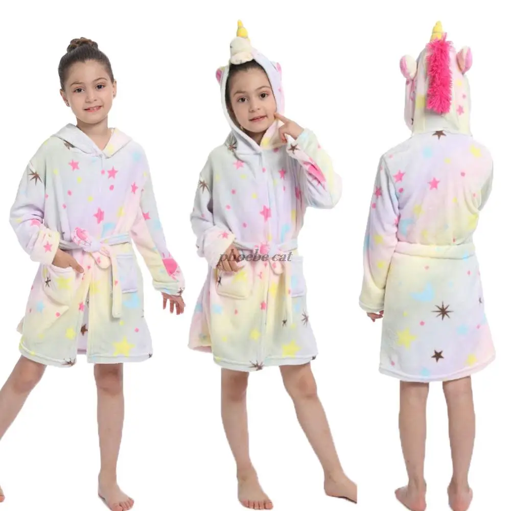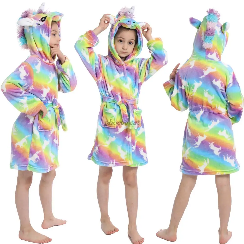 Детская ночная рубашка Единорог одежда для маленьких девочек полотенца Мультяшные Животные Детская одежда для сна халат мягкий теплый детский халат с капюшоном