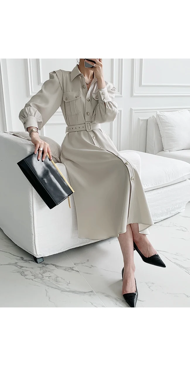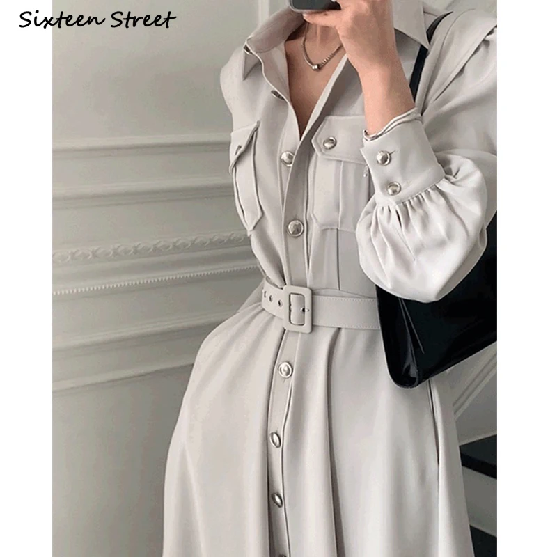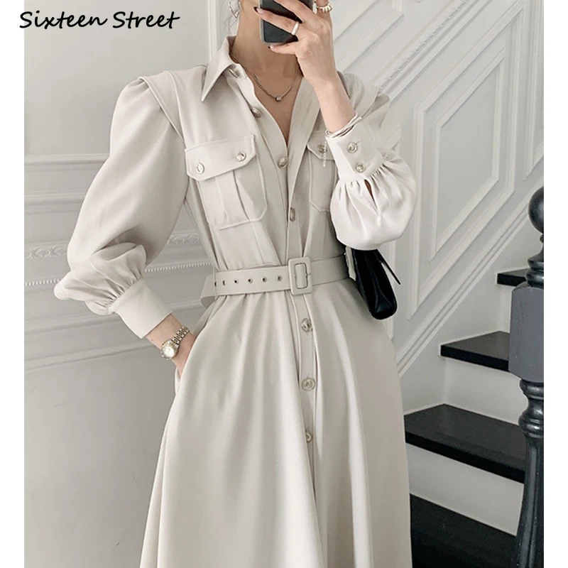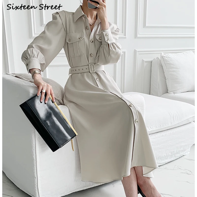 Женское винтажное платье на пуговицах, элегантное праздничное платье цвета хаки с отложным воротником и длинным рукавом, осень 2022