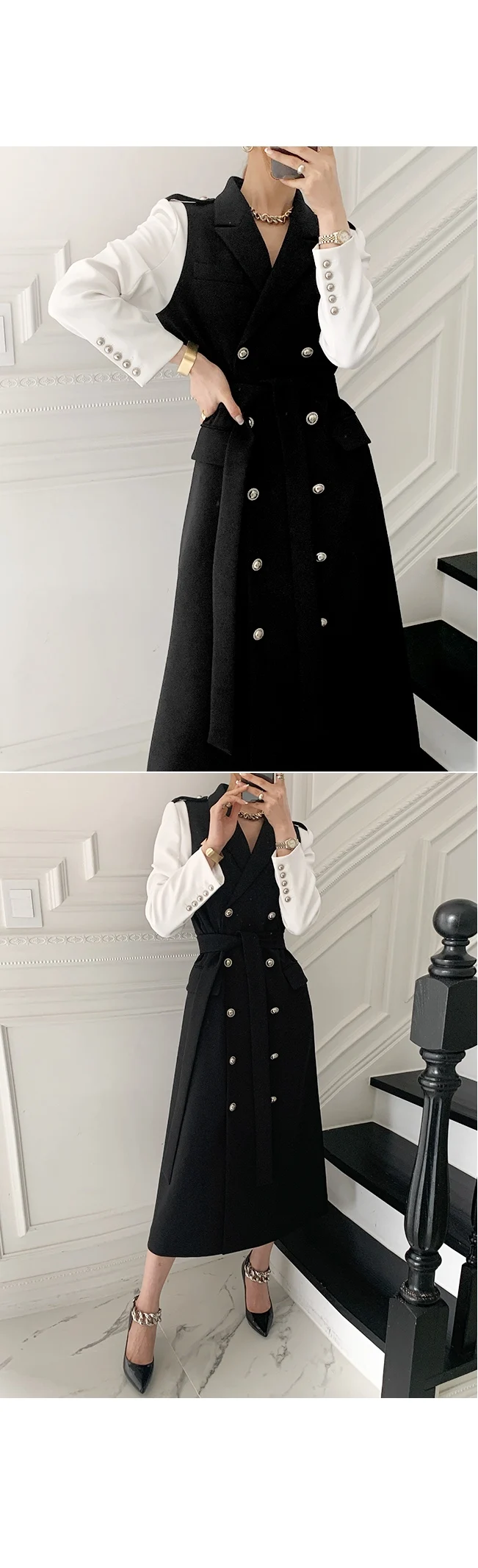 Новое черное платье для женщин, Осеннее однобортное белое однотонно...