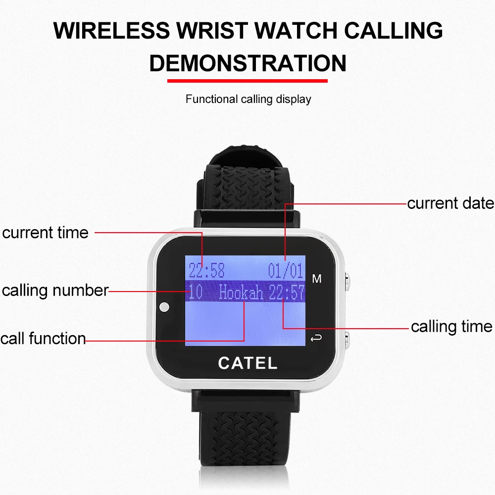 CATEL русская 10 Кнопка 2 часы пейджер приемник беспроводная система вызова передатчик вызова пейджер ресторан отель официант кафе Обслуживание звонок зуммер