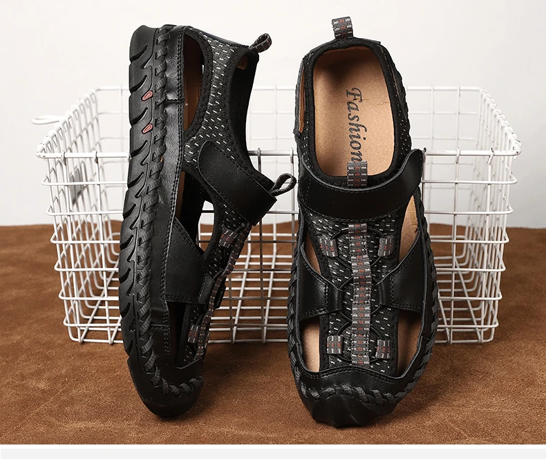 Сандалии мужские из натуральной кожи, модная повседневная пляжная о...