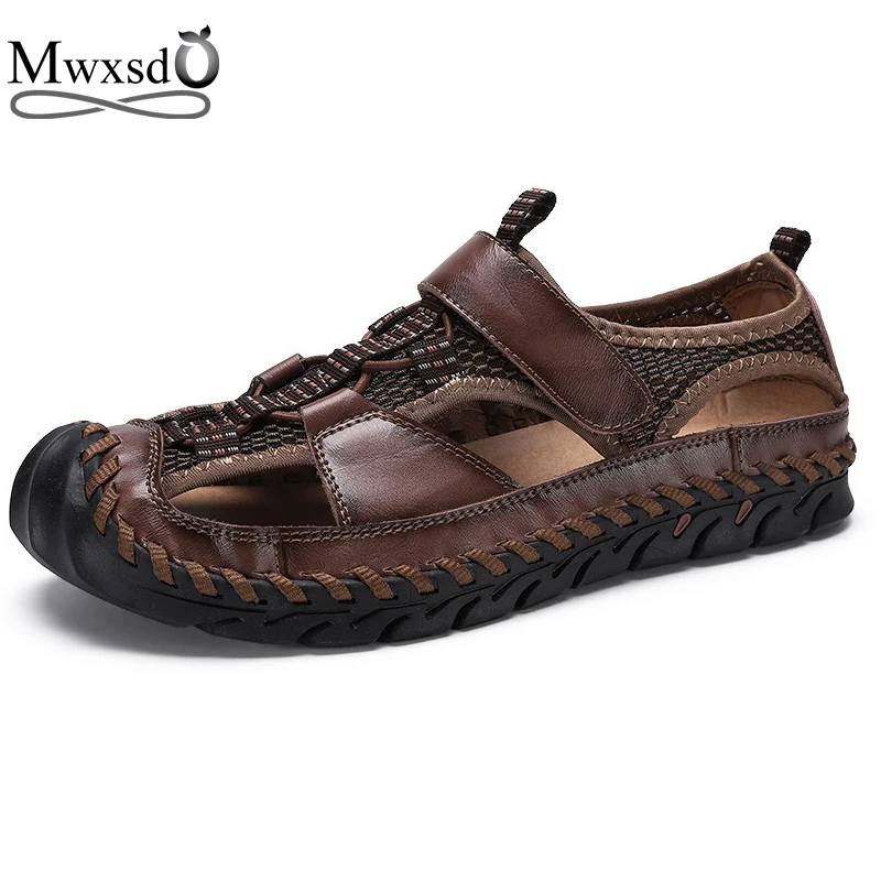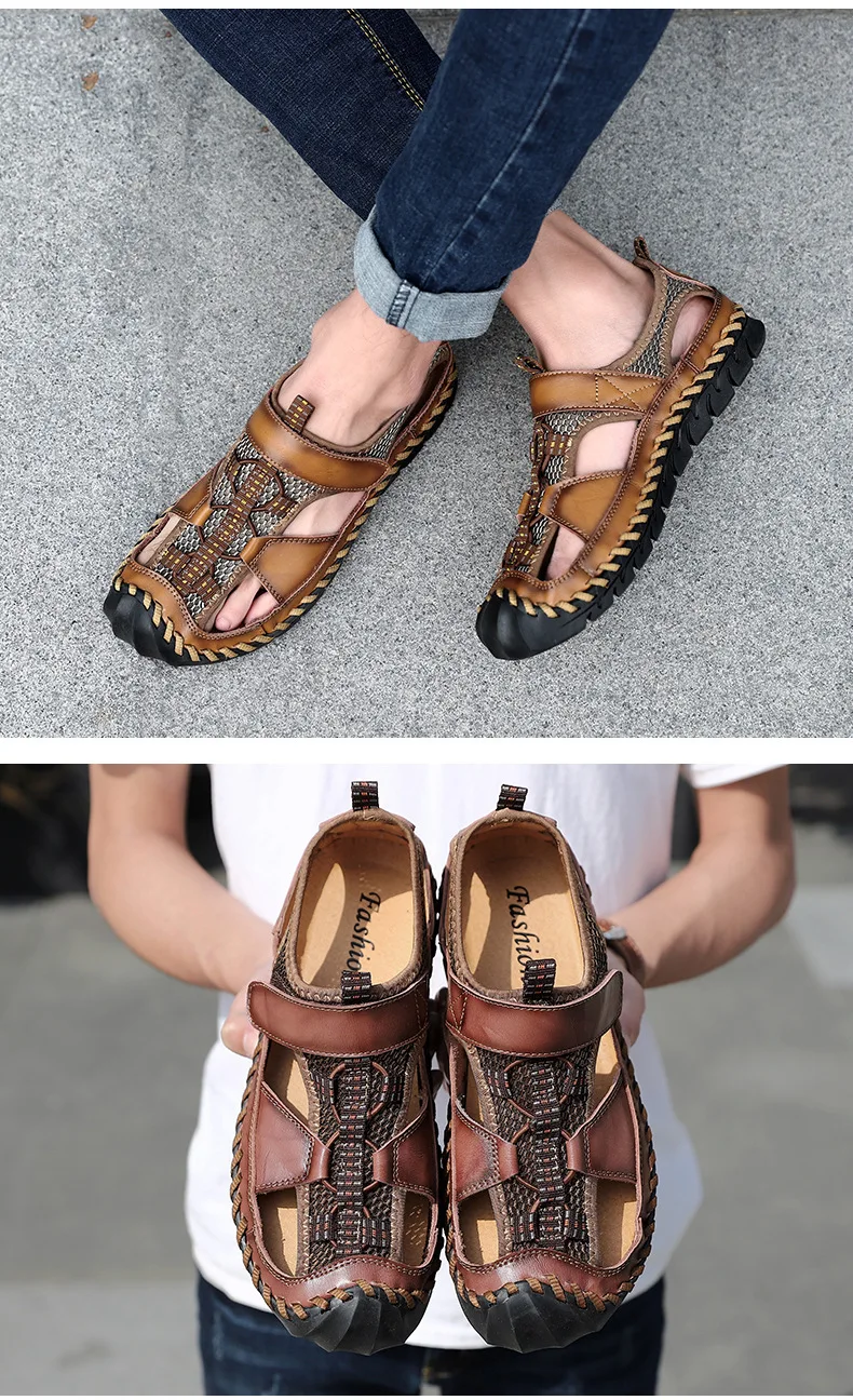 Большие размеры; Мужские летние сандалии из натуральной кожи; Мужская обувь из мягкой кожи; Мужская нескользящая обувь; 47 48