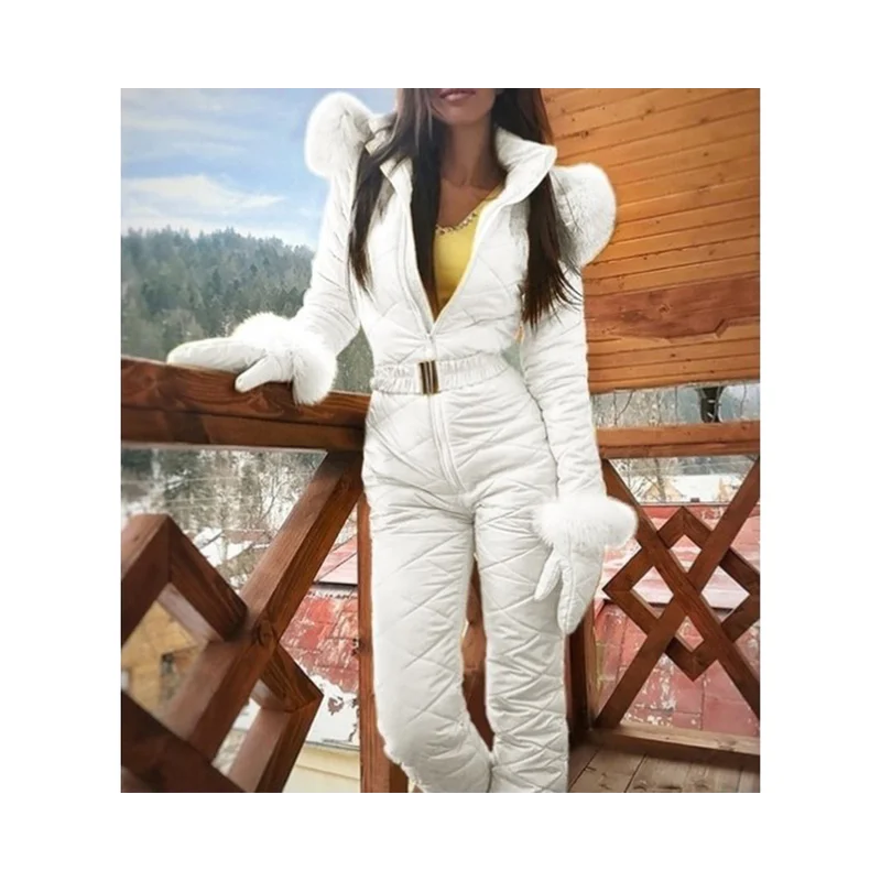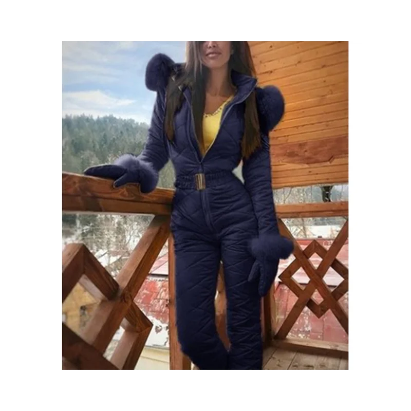 Зимние комбинезоны с капюшоном, парка, элегантные теплые лыжные костюмы с хлопковой подкладкой и поясом, прямые цельные женские спортивные костюмы на молнии-40