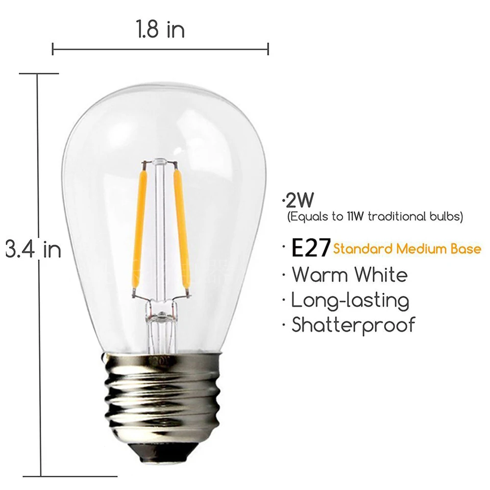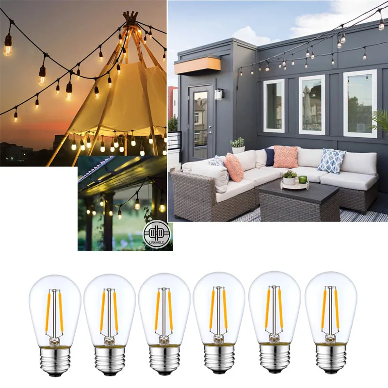 Светодиодный светильник S14, сменный, Небьющийся, теплый, белый, 2700K, E27, винтажный, светодиодный, Эдисон, лампы для улицы, сада, двора, струнный светильник s