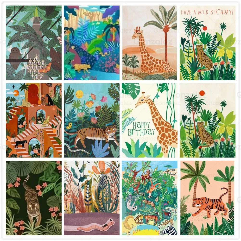 Алмазная картина с изображением животных, квадратных камней, тигров...