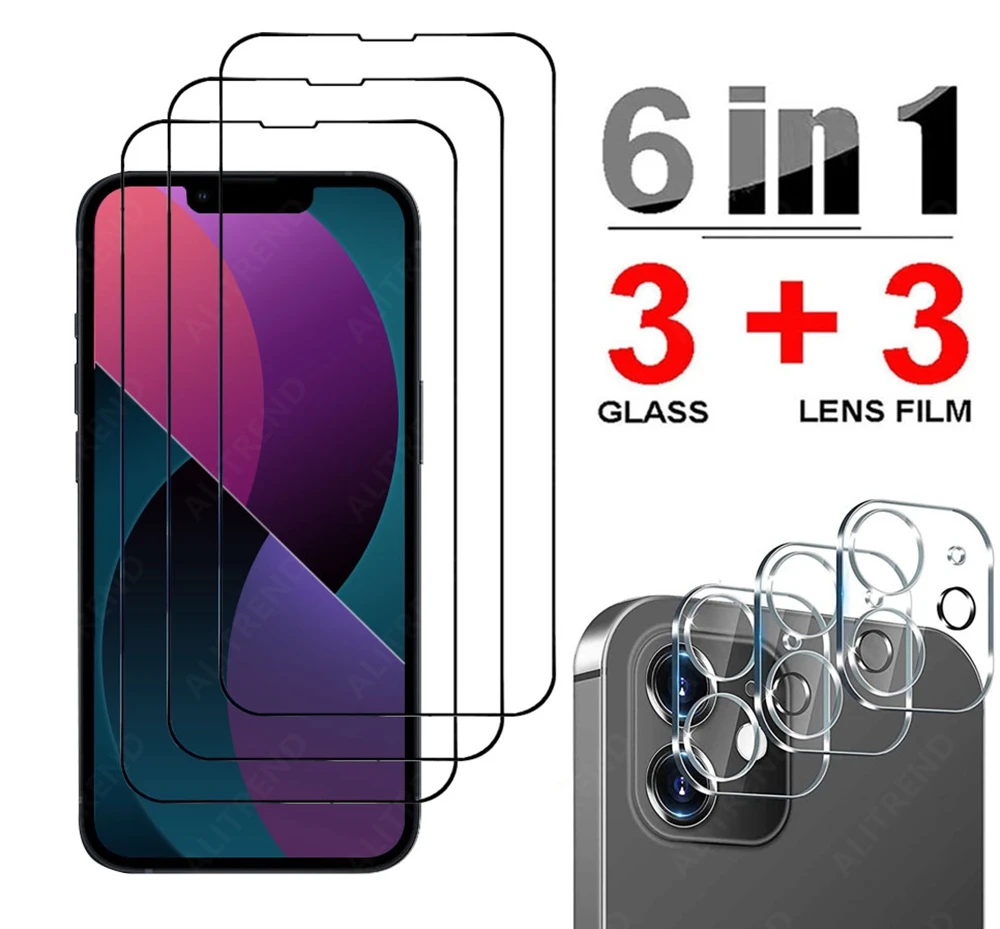 Защитная пленка 6 в 1 для экрана iphone 13 Pro Max, закаленное стекло, 3D объектив камеры, стекло с полным покрытием, пленка для iphone 13 mini 13 Pro, стекло