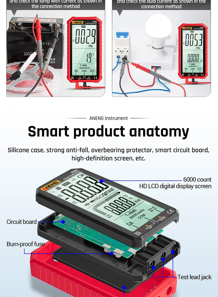 Автомобильный цифровой мультиметр ANENG, 620A, 6000 отсчетов, вольт...