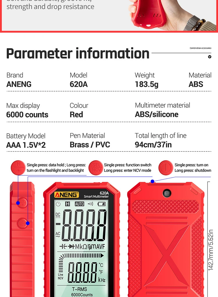 Цифровой мультиметр ANENG 620A, 4,7 дюйма, ЖК-дисплей, ACDC, ультра...