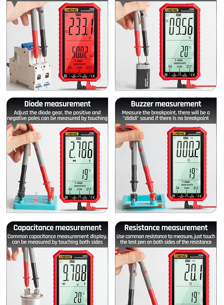 Цифровой мультиметр ANENG 620A, 6000 отсчетов, Бесконтактный индика...