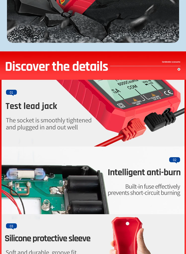 620A цифровой Смарт мультиметр-Транзистор тестер 6000 отсчетов True...