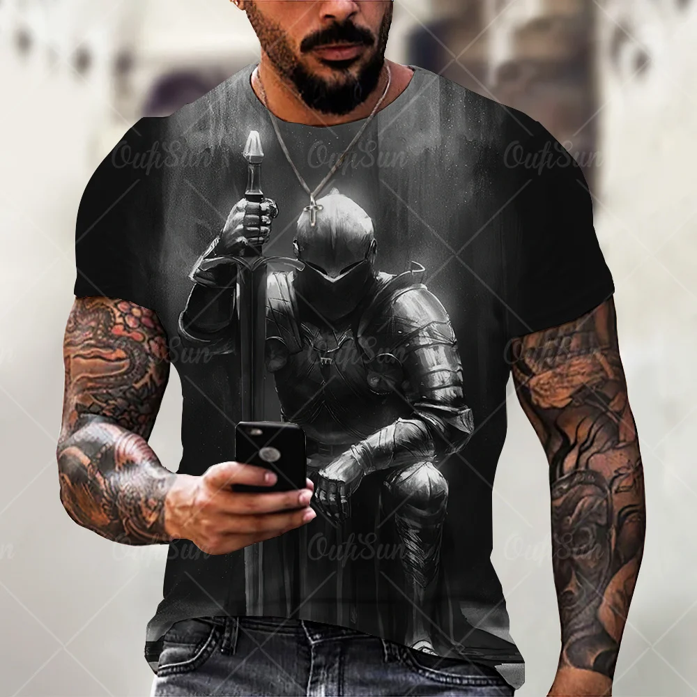 Футболка мужская с 3D принтом, с рисунком самурая, рыцари, темплар,...
