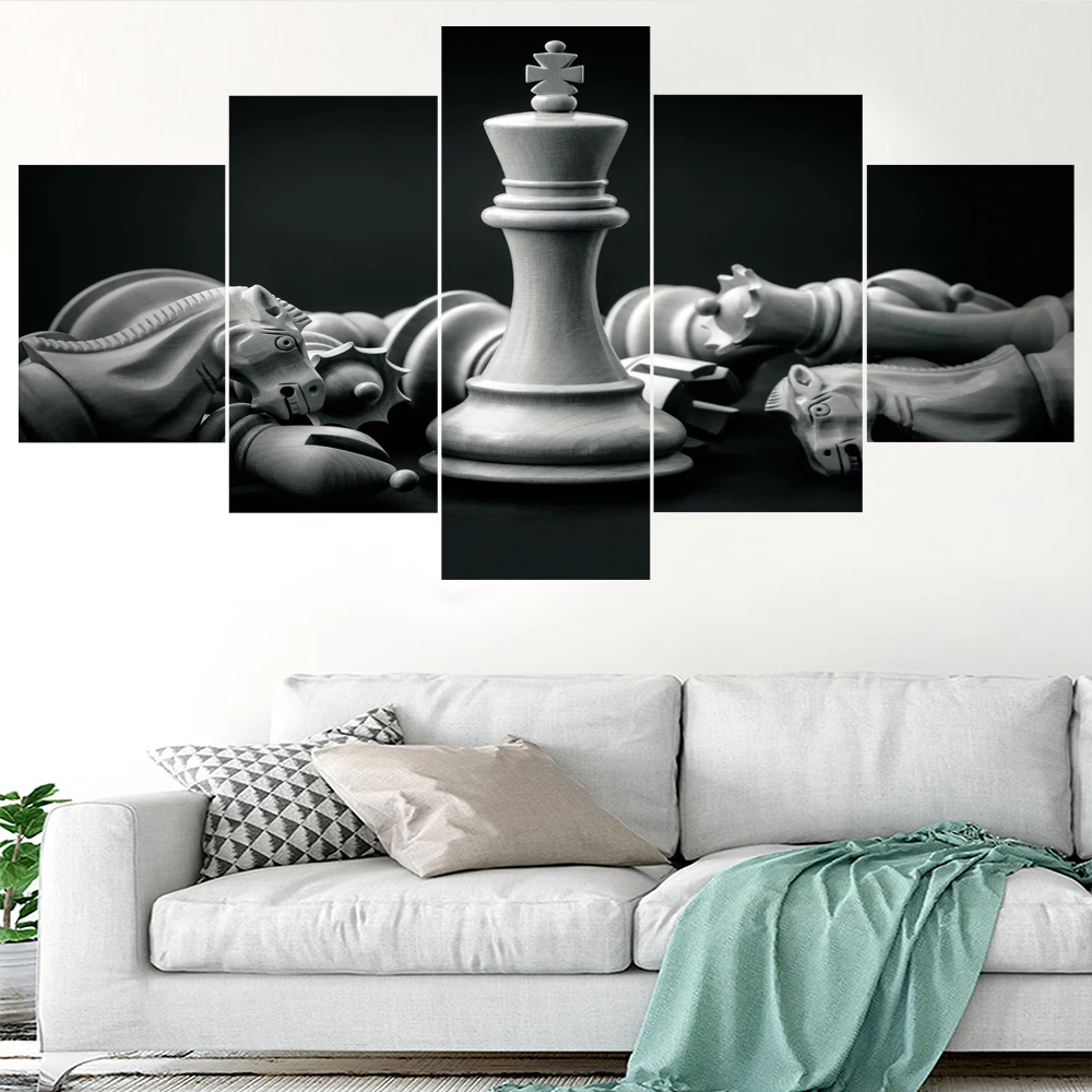 Набор из 5 шт. шахматного холста, настенное искусство, холст с рамкой, черная и белая живопись, винтажные аксессуары для украшения дома