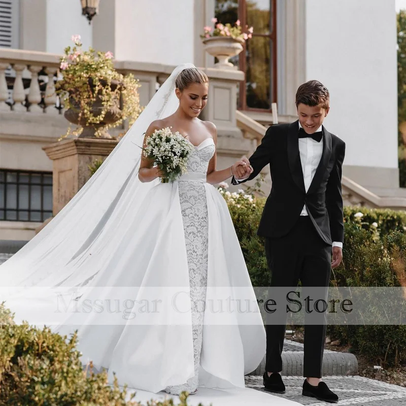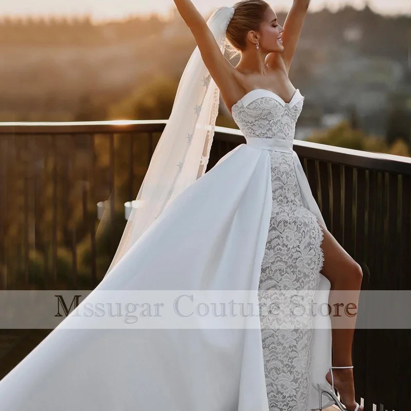 Кружевное свадебное платье-русалка, без бретелек, со съемным шлейфом и аппликацией, 2021