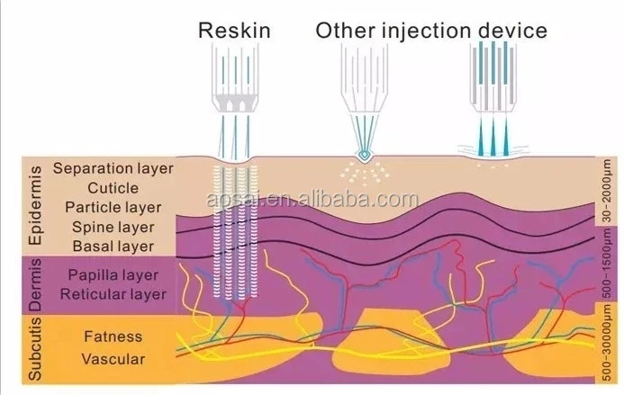 1. Продукт рассеивается в туман после проникновения в кожу.2. Увеличение капилляров, связанных с поглощением.3. Увеличенная площадь поглощения.4. Продукт работает быстрее.5. Не легко затвердевать.6. Без иглы, легкой боли или боли.7. Простая эксплуатация и простота в использовании.