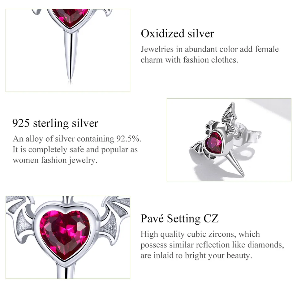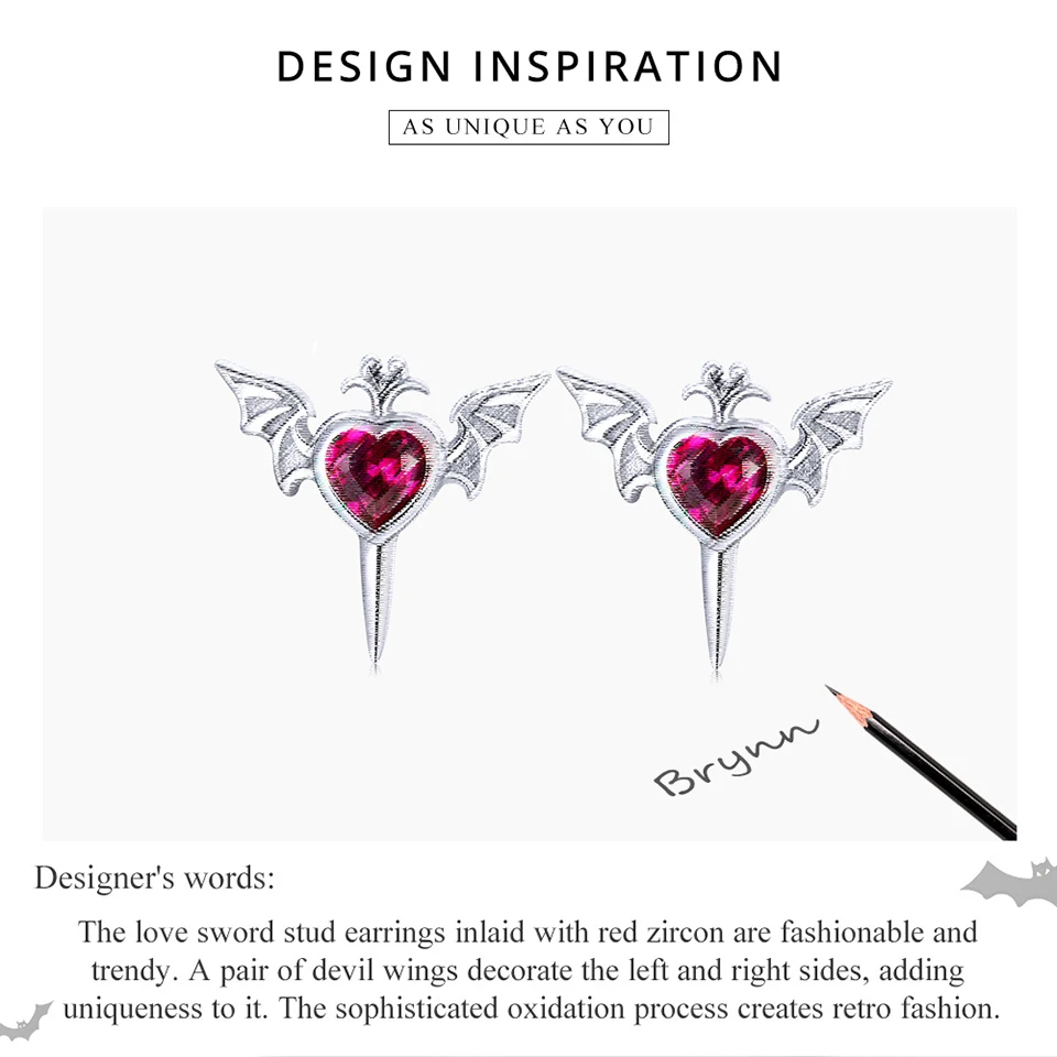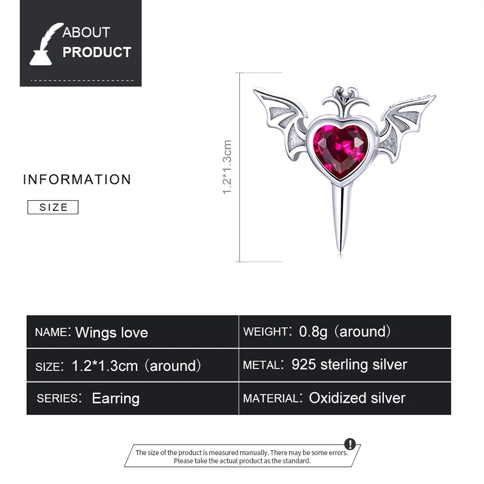 ❤[Размер] 1,2*1,3 см❤【Вес 】 0,8*2 г❤【Quantity】 1 пара❤【Материал】 100% Стерлинговое Серебро 925 пробы + АААА розовый циркон + окисление❤【Стиль 】мода, панк, хип-хоп, готика, поп❤【Вечеринка, концерты, даты, дни рождения, юбилеи, покупки...❤【Description】The серьги-гвоздики с надписью love sword, инкрустированные красным цирконием, являются модными и модными. Пара дьявольских крыльев украшают левую и правую стороны, добавляя ей уникальности. Изысканный процесс окисления создает ретро-моду.