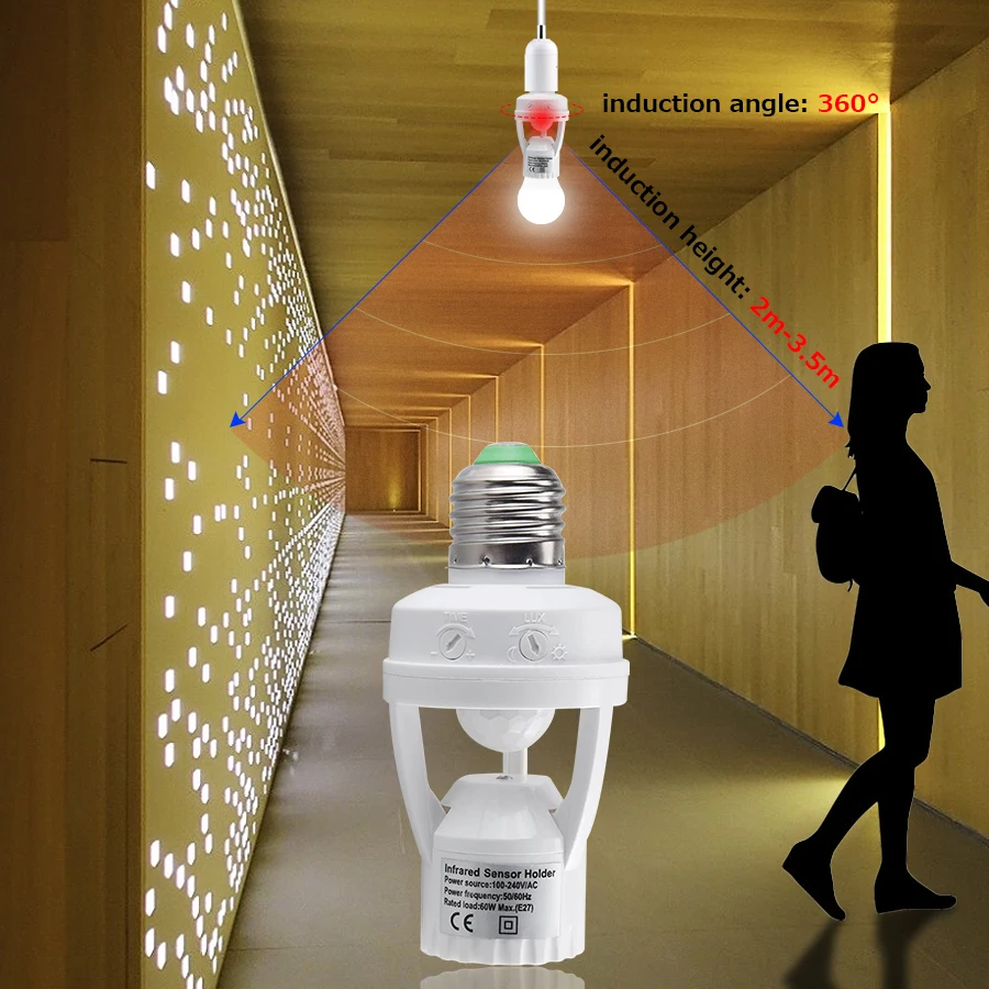 E27 держатель лампы PIR умный датчик движения человеческого тела AC 100-240 в E27 розетка Стандартный Светильник ель света
