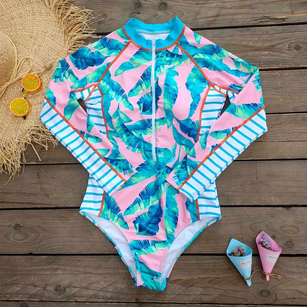 Слитный купальник с цветочным принтом, женский купальник с длинным ...