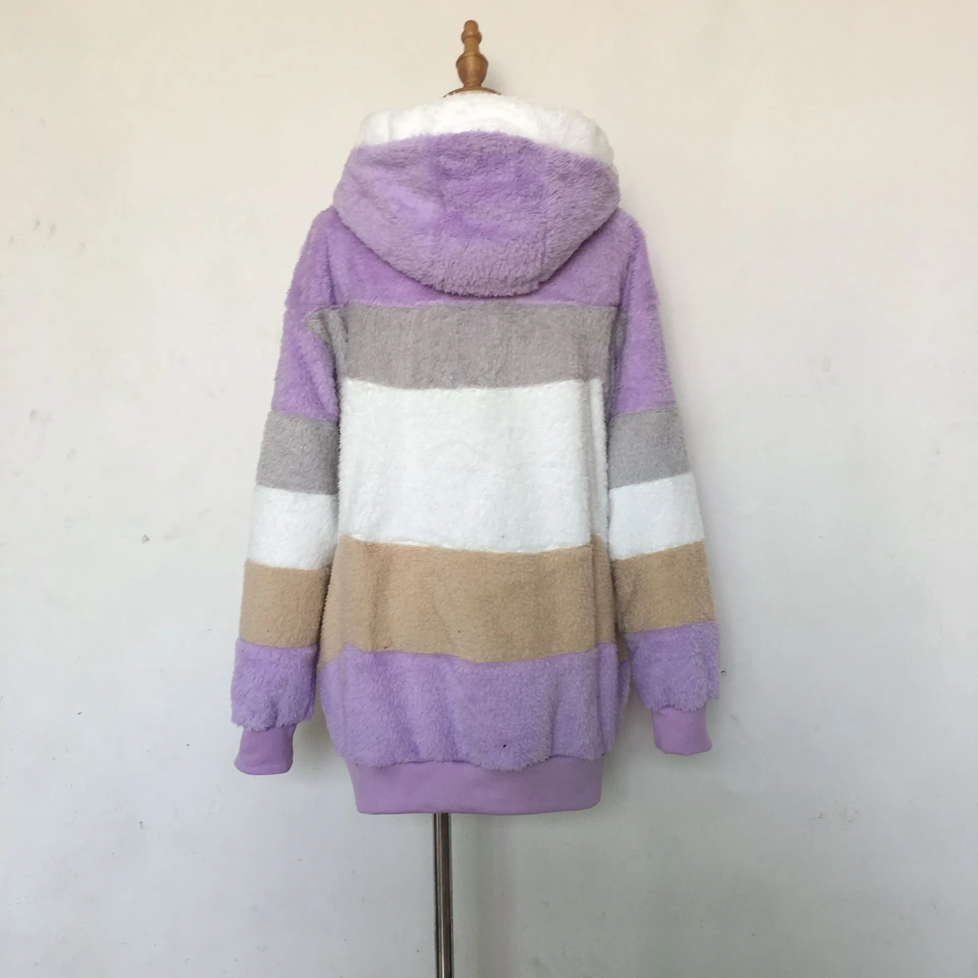 Зимние Модные теплые фланелевые женские толстовки в полоску в стиле...