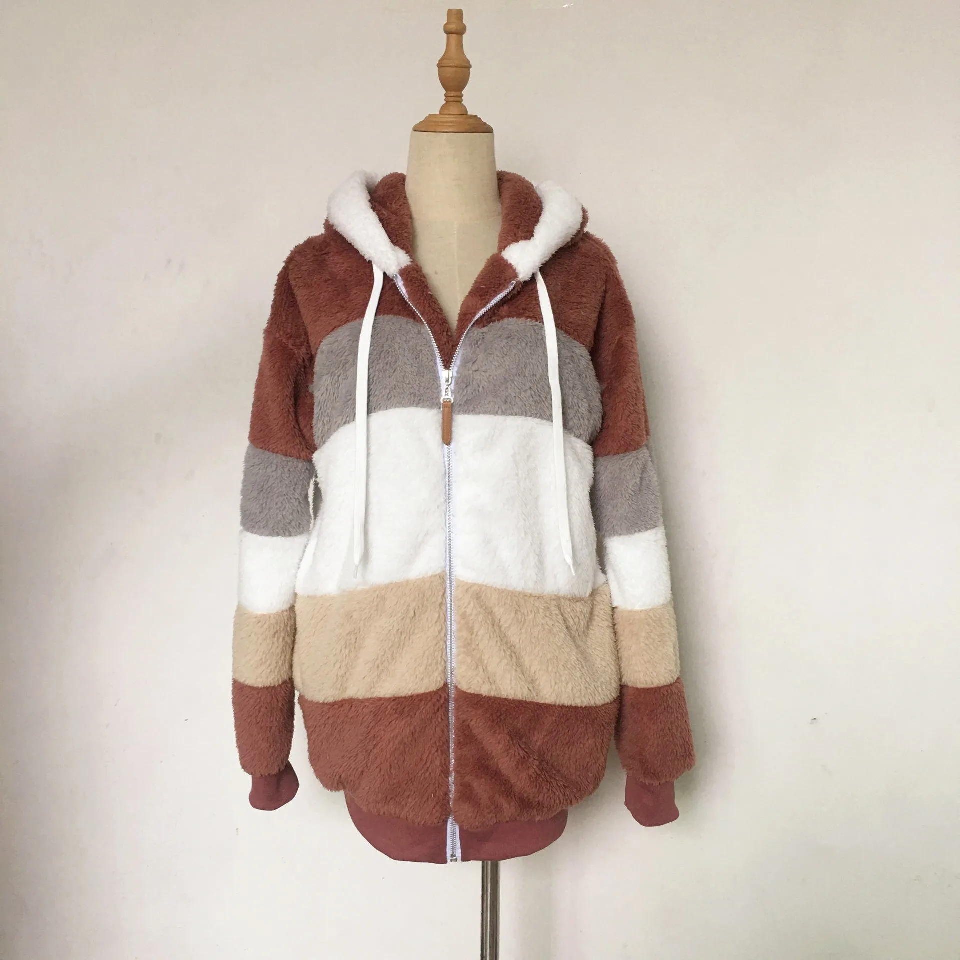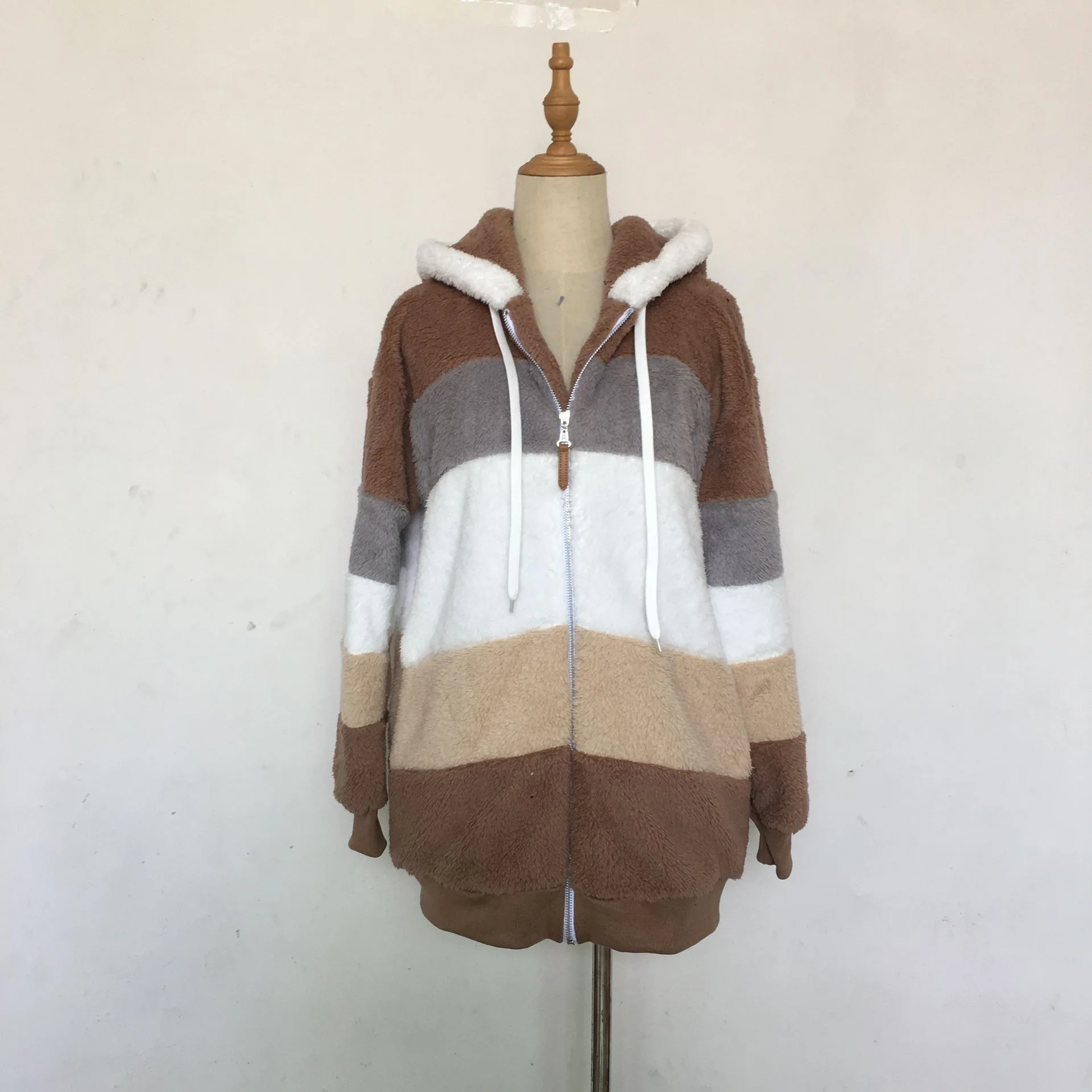 Женская куртка из искусственного меха, кашемировая куртка в полоску...