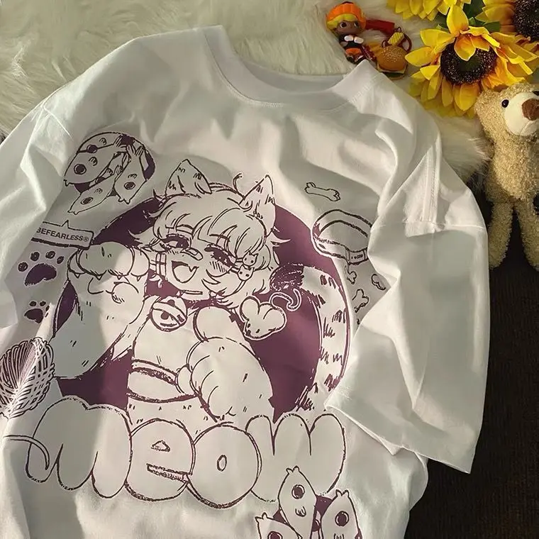Летняя футболка с аниме-принтом 2022, Корейская Свободная рубашка с...